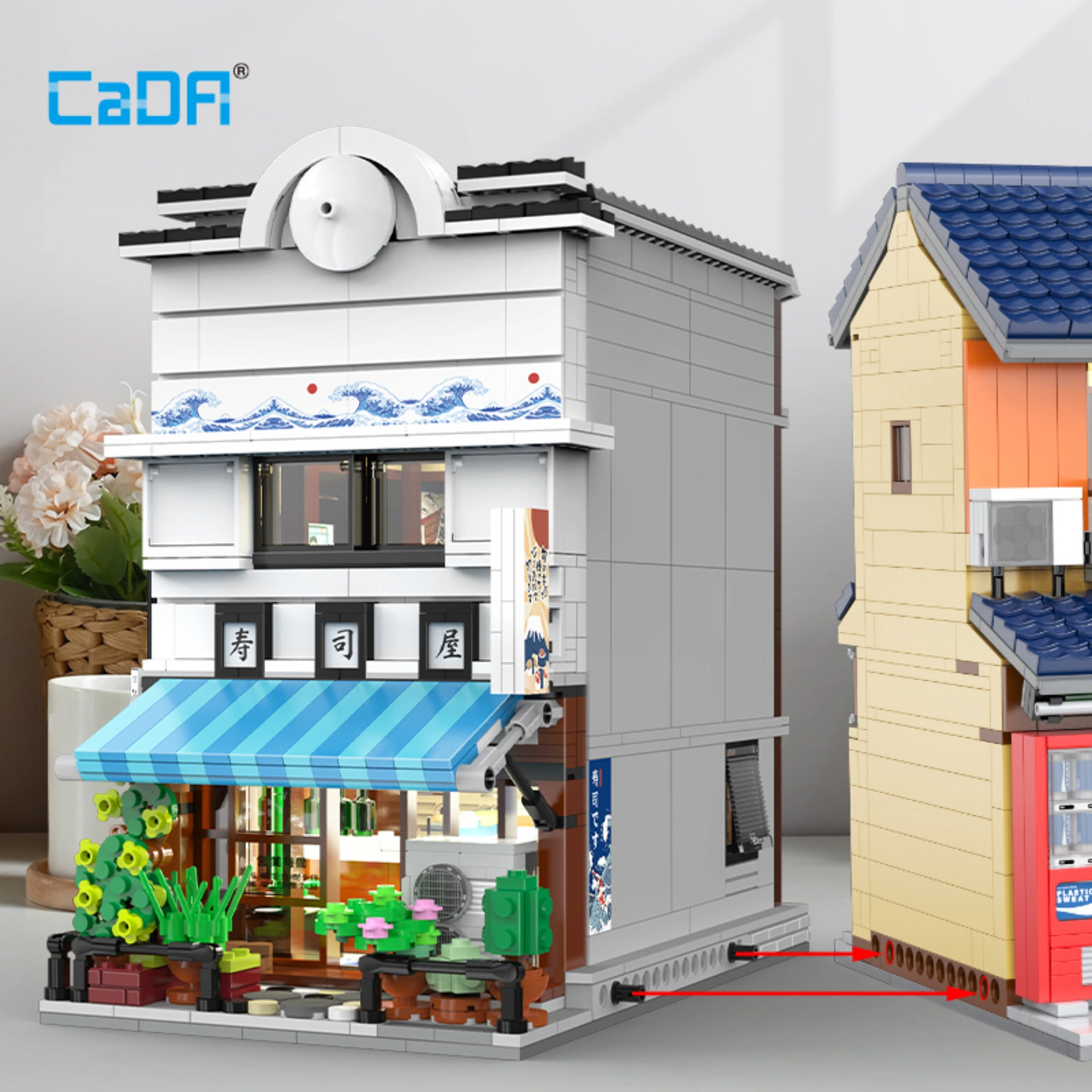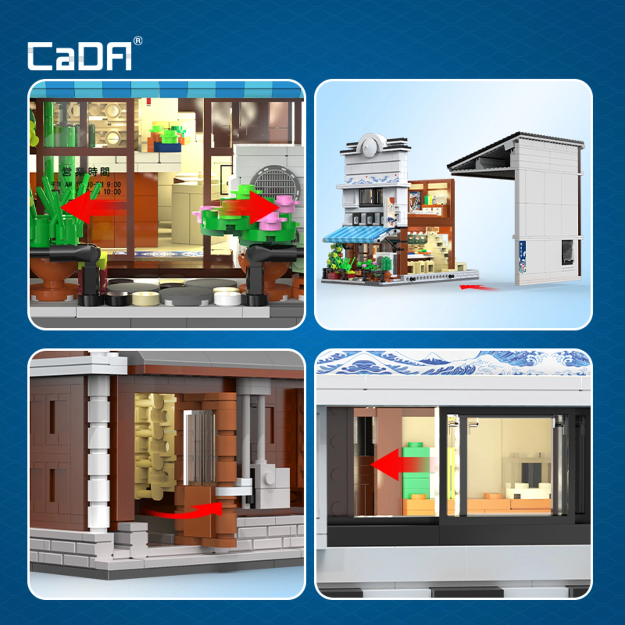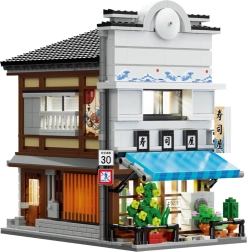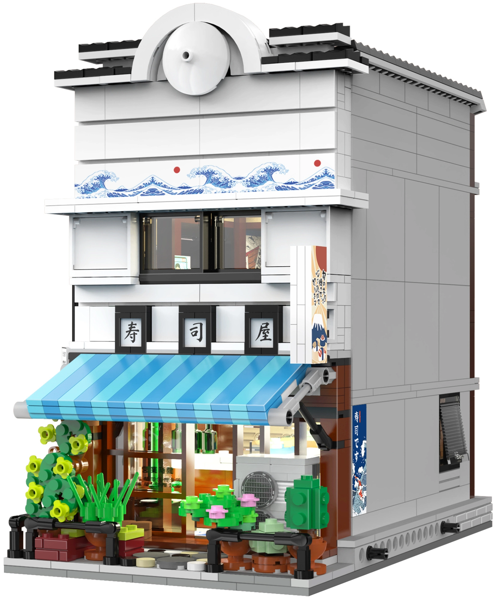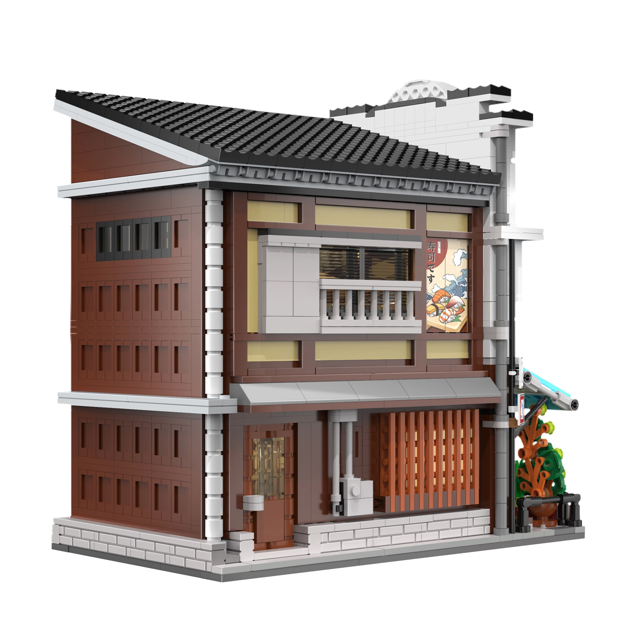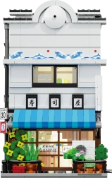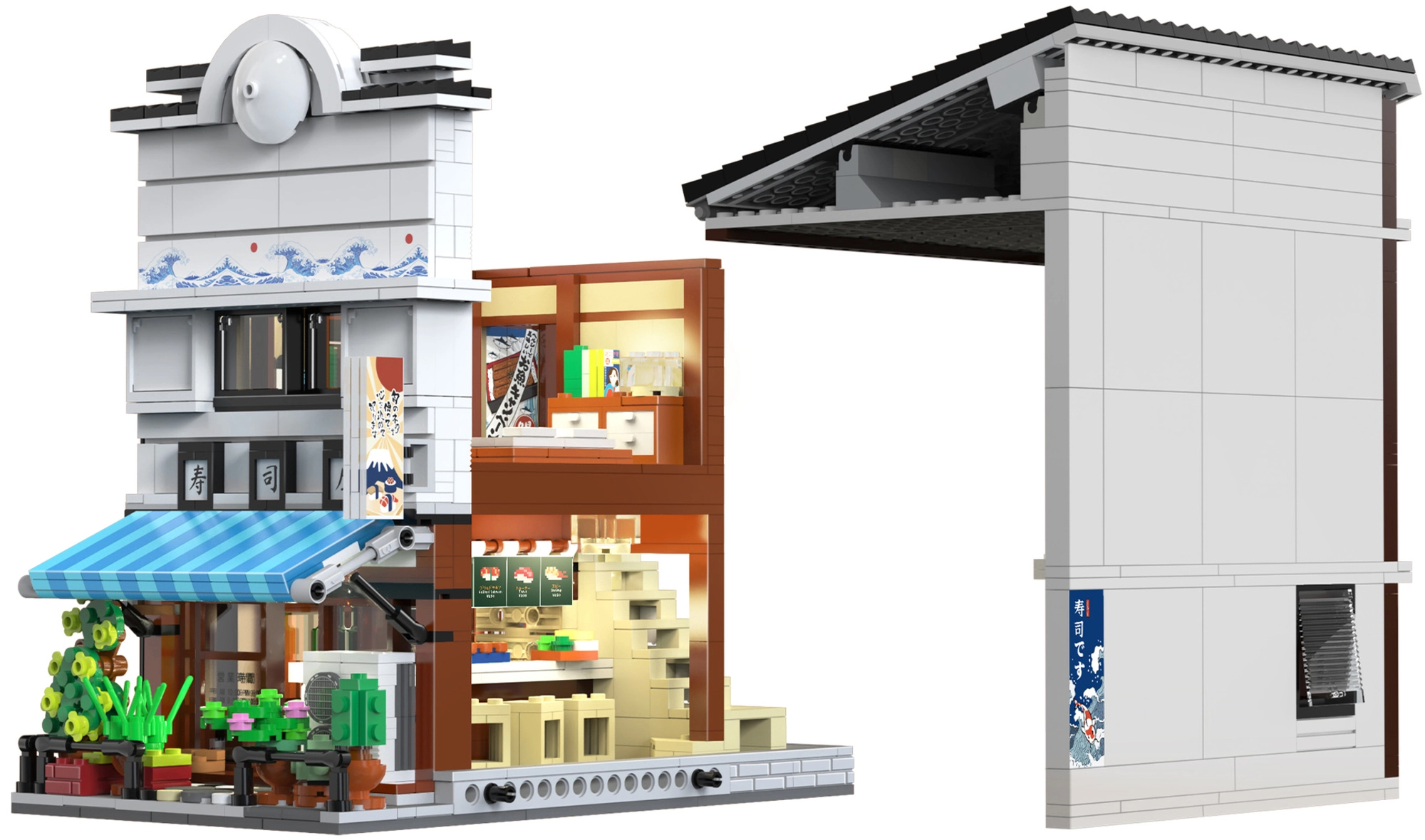 Ce kit au design raffiné présente une boutique de sushi japonaise à deux étages avec un accent sur les détails intérieurs et extérieurs. La structure ouvrable permet d’observer facilement l’intérieur – vous y trouverez des tabourets de bar, du bambou décoratif, un escalier ainsi qu’une chambre confortable à l’étage avec lit, télévision et commode.