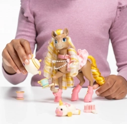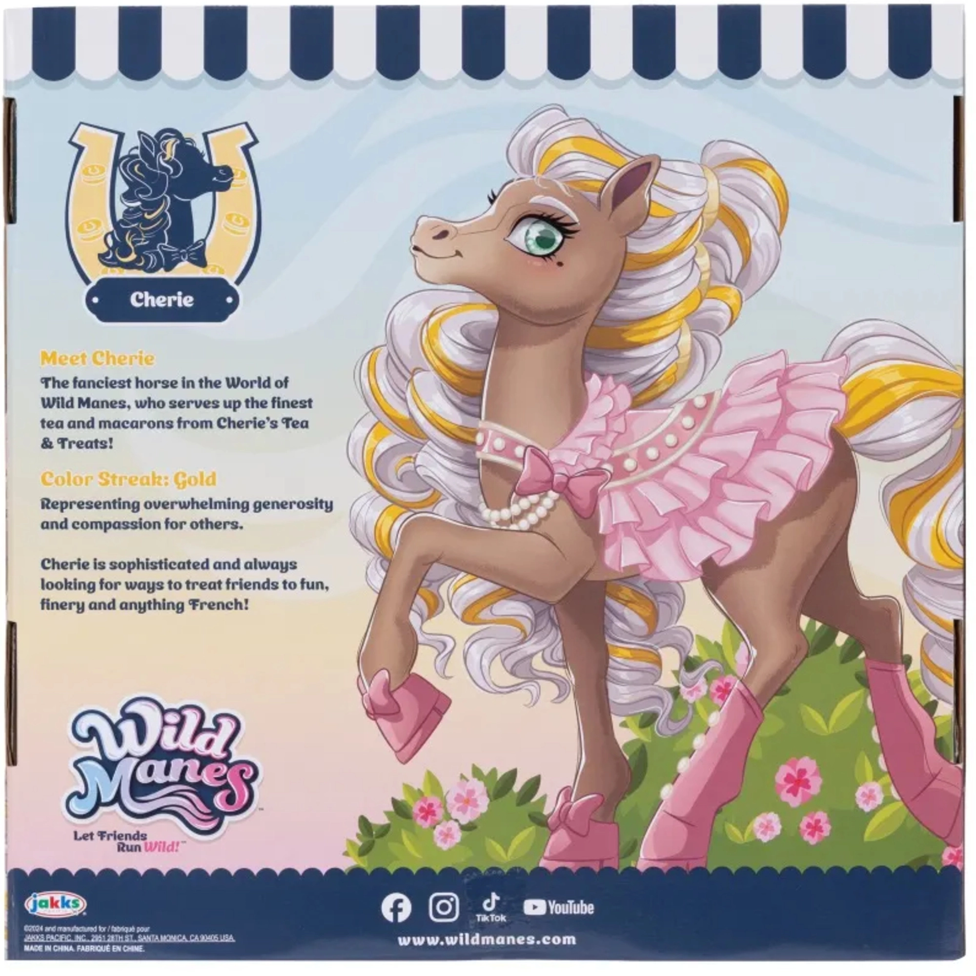 La figurine Cherie en jupe rose et petites bottines est prête pour une tea party. Grâce à ses jambes articulées, vous pouvez la positionner facilement et recréer des scènes du monde WILD MANES. Sa longue crinière ondulée et sa queue, avec des rayures dorées, invitent au coiffage et au stylisme.