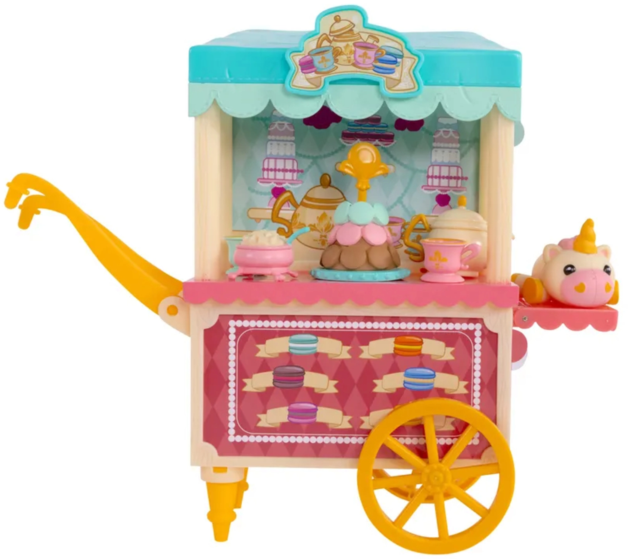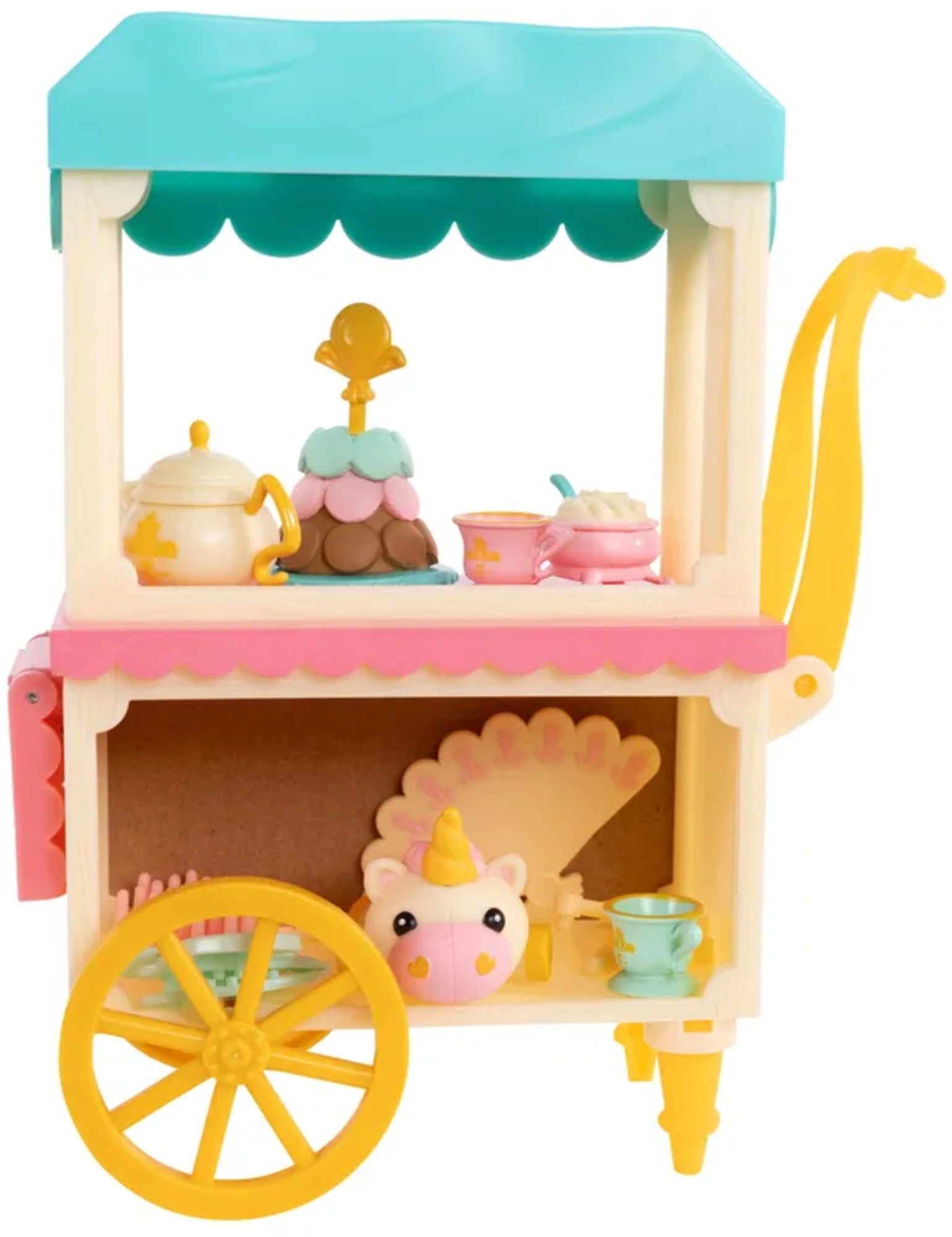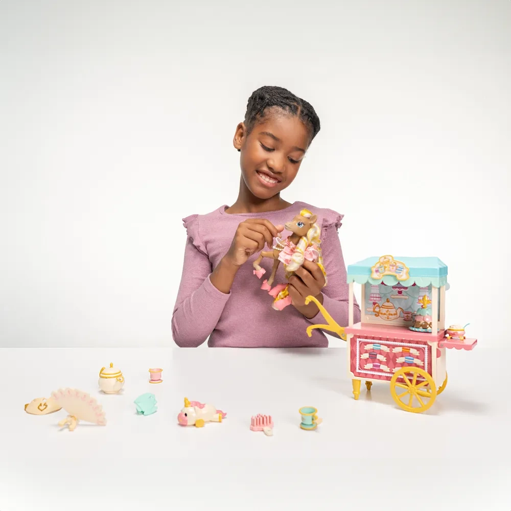 Le coffret comprend un service à thé, des desserts, un peigne, une petite licorne et d’autres éléments pour des mises en scène variées.