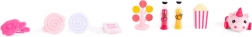 Pop-corn, sucettes, boissons et autres petits éléments pour un jeu réaliste. Inclus aussi une brosse et des barrettes pour coiffer la crinière.