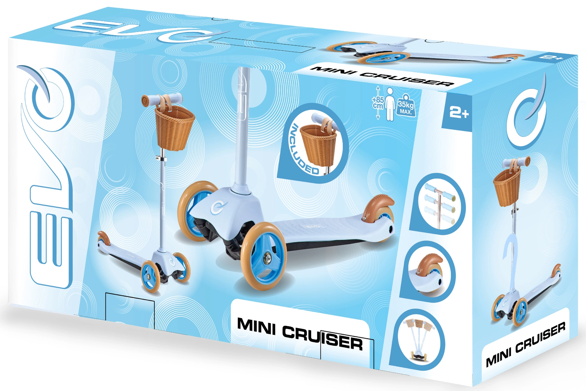 L’EVO Mini Cruiser est une trottinette d’équilibre à trois roues conçue pour les premières sorties, le développement de l’équilibre et la confiance en conduite. Son plateau bas et large avec surface antidérapante, ses deux grandes roues avant et ses roulements ABEC-5 offrent une glisse fluide et silencieuse sur surfaces planes. Le panier amovible permet aux enfants d’emporter de petits objets ou un jouet préféré lors des promenades.