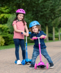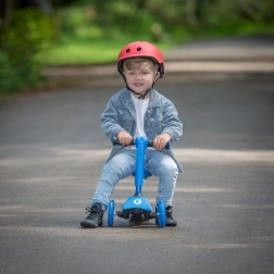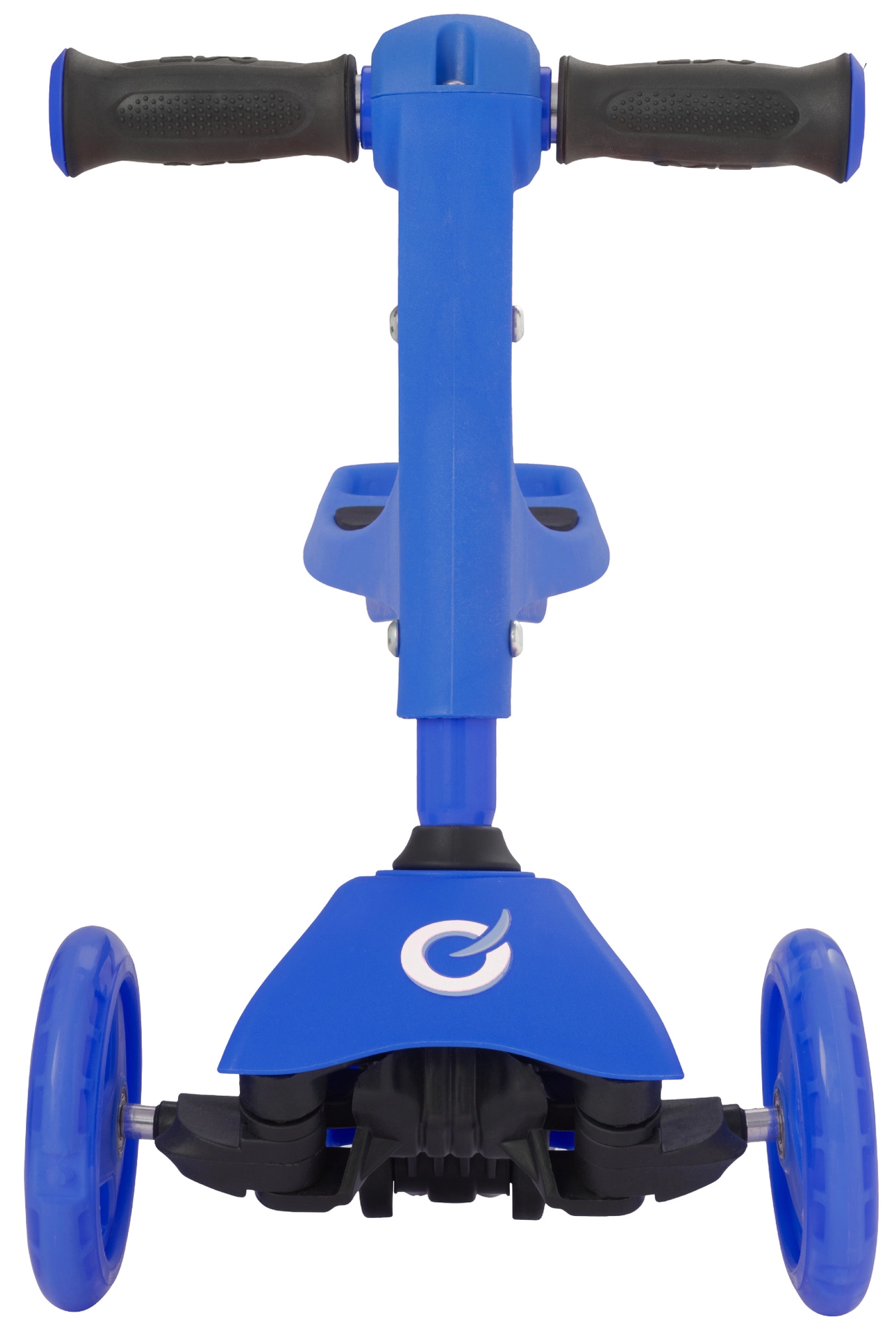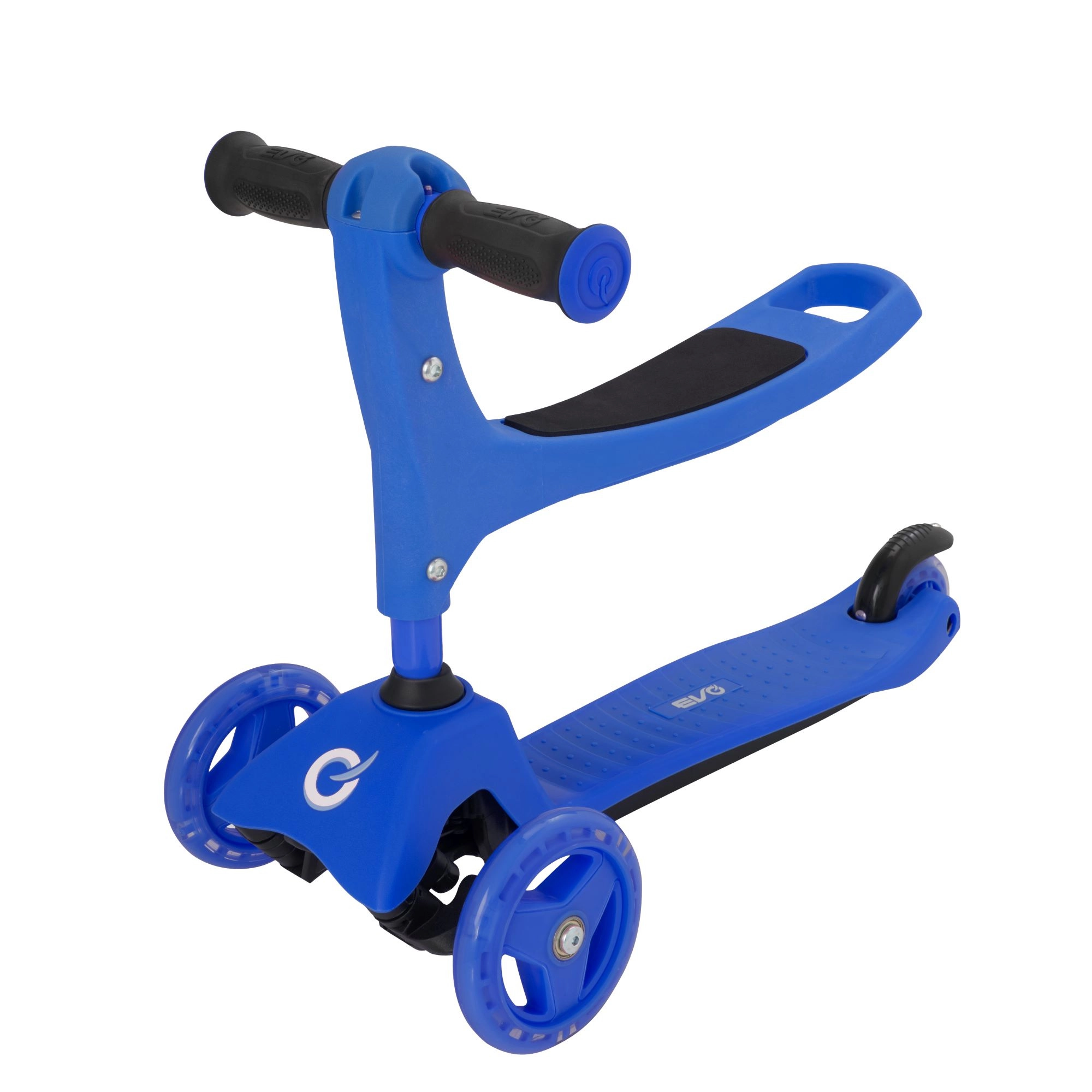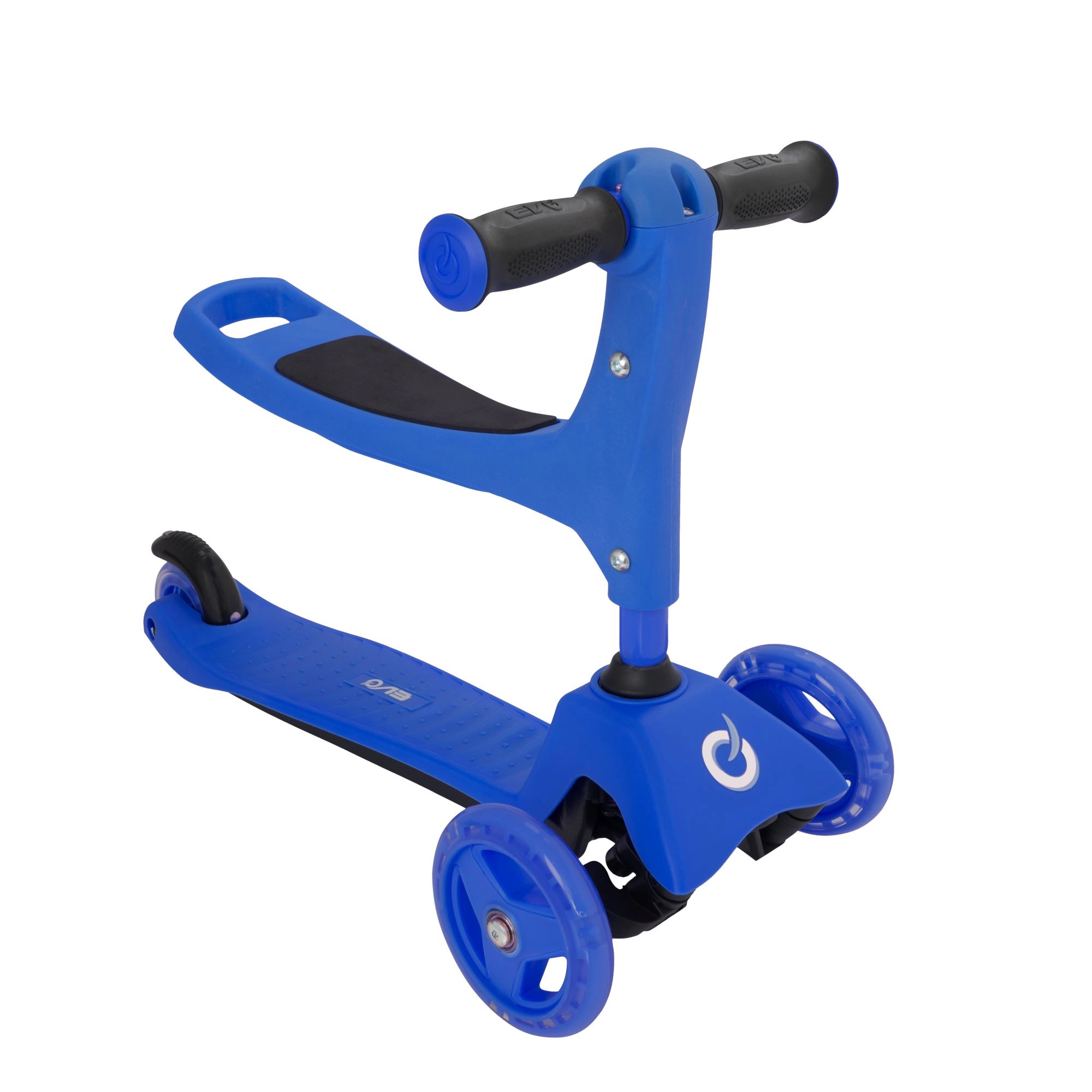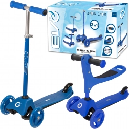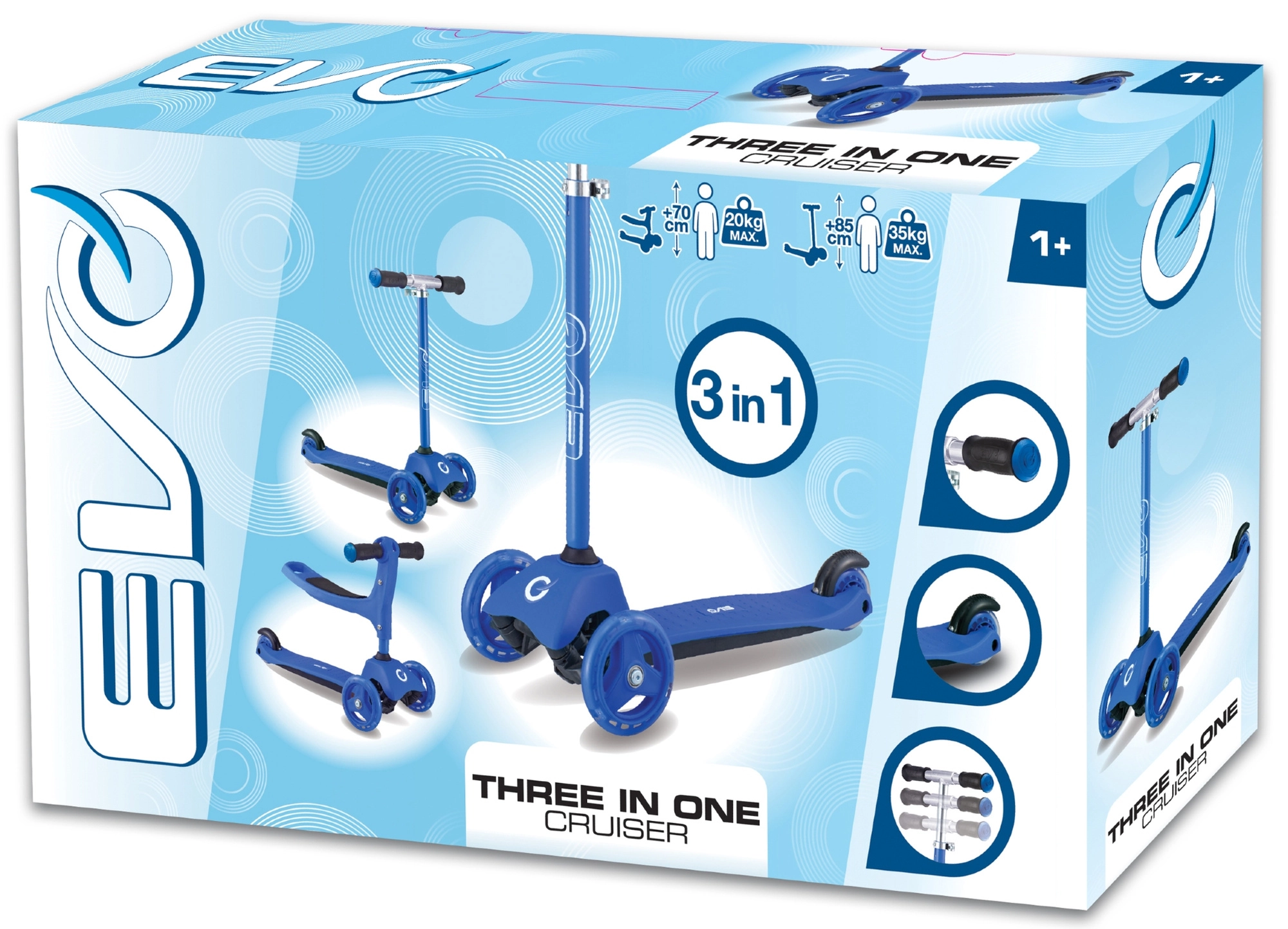 La trottinette EVO 2-en-1 évolue avec l’enfant : commencez en mode porteur avec siège pour un départ en toute confiance, puis passez à la trottinette tricycle classique. Deux grandes roues avant assurent une excellente stabilité, la direction par inclinaison (lean-to-steer) favorise l’apprentissage naturel de l’équilibre et le plateau antidérapant renforce la sécurité à chaque mètre.