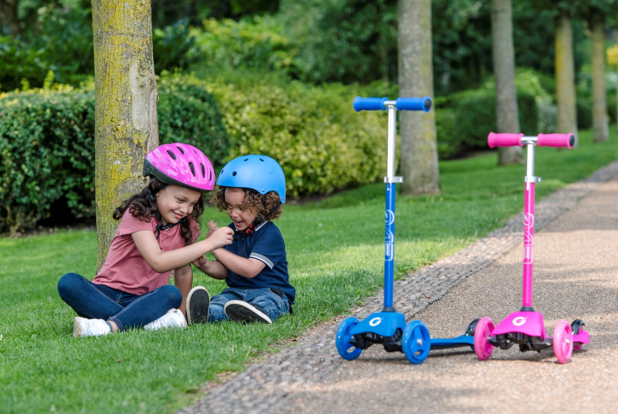 Deux grandes roues avant maintiennent la direction et l’équilibre, le plateau bas antidérapant apporte de l’assurance aux petits pilotes.