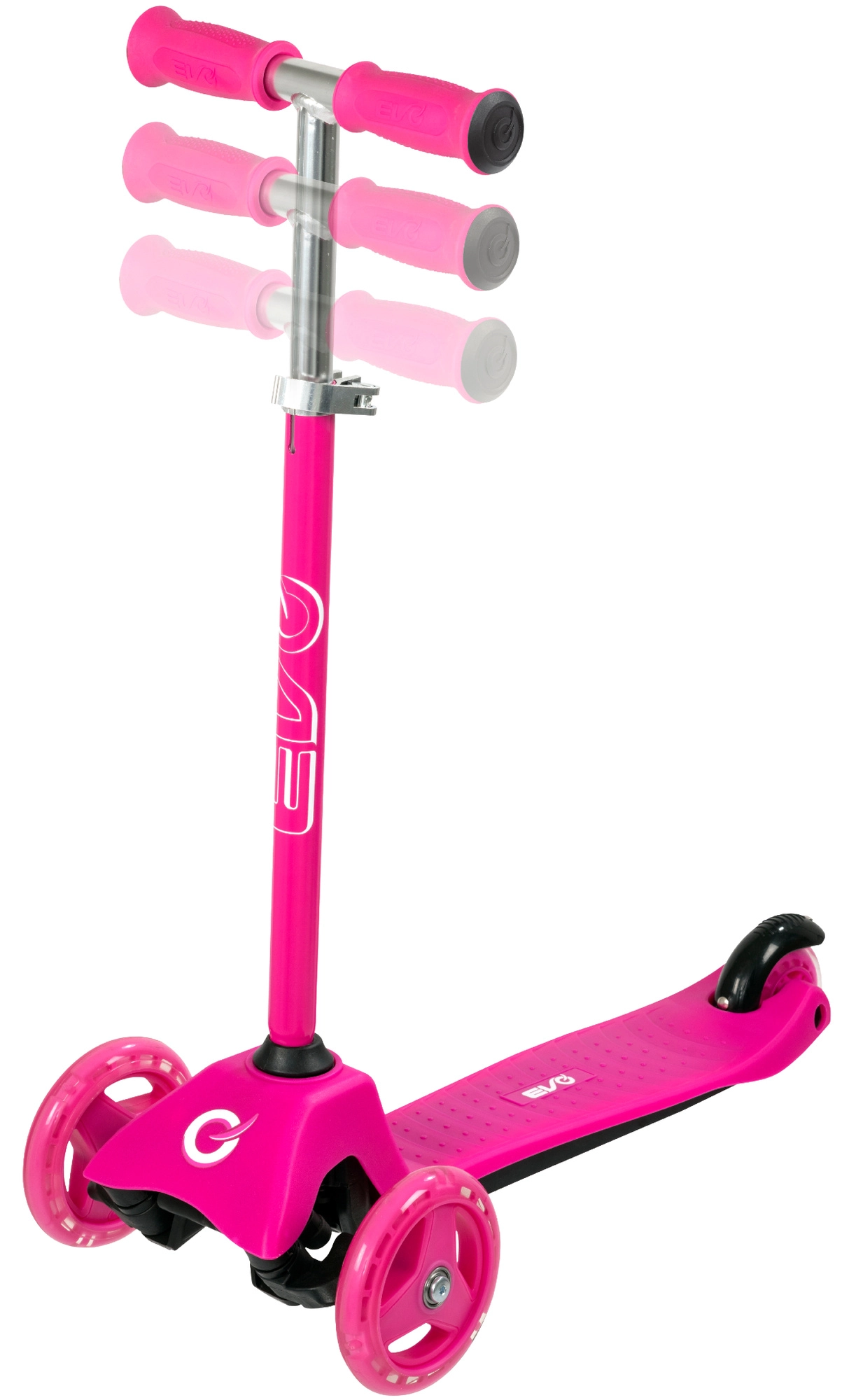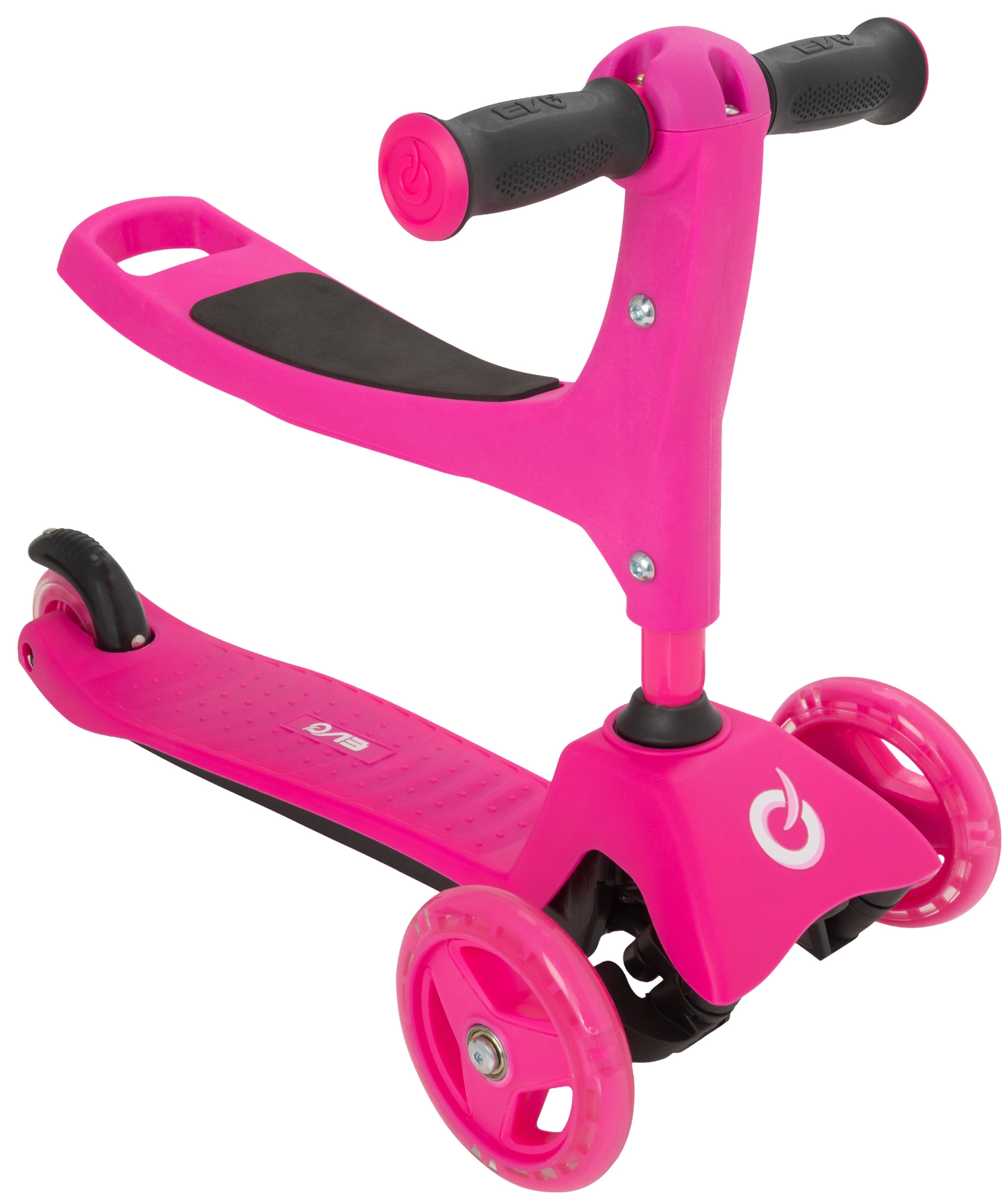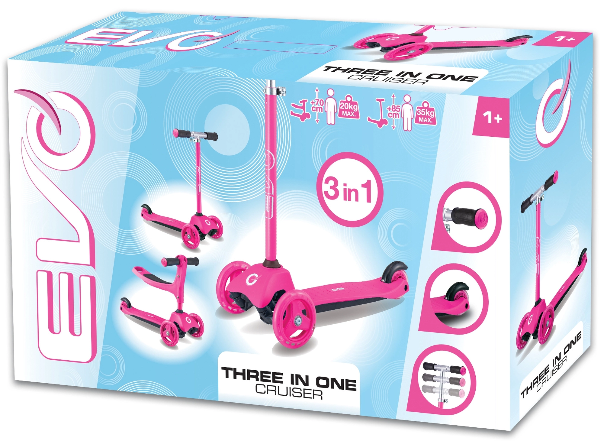 La trottinette enfant 2-en-1 EVO rose grandit avec votre enfant : en un clin d’œil, transformez-la de porteur avec siège en tricycle stable. Grâce aux deux roues avant, au plateau bas et à la direction par inclinaison, elle offre une excellente stabilité, une maniabilité facile et un freinage sûr via le garde-boue arrière. Le guidon réglable en hauteur, les roues silencieuses avec roulements ABEC-5 et le plateau antidérapant assurent une conduite confortable et ludique pour les plus petits comme pour les plus grands enfants.