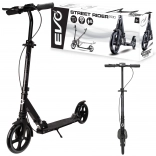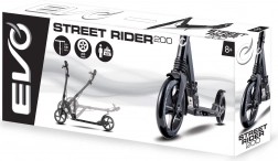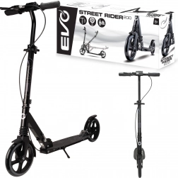 La trottinette légère et robuste EVO Street Rider 200 pour les riders dès 8 ans offre de grandes roues de 200 mm, une réduction de la résistance au roulement grâce aux roulements ABEC-7, une suspension avant et arrière, un mécanisme de pliage pour un transport facile et un guidon réglable en hauteur. L’arrêt sûr est assuré par un frein arrière à pédale et un frein avant à main, tandis qu’une plateforme antidérapante et une béquille intégrée augmentent la stabilité et la praticité.