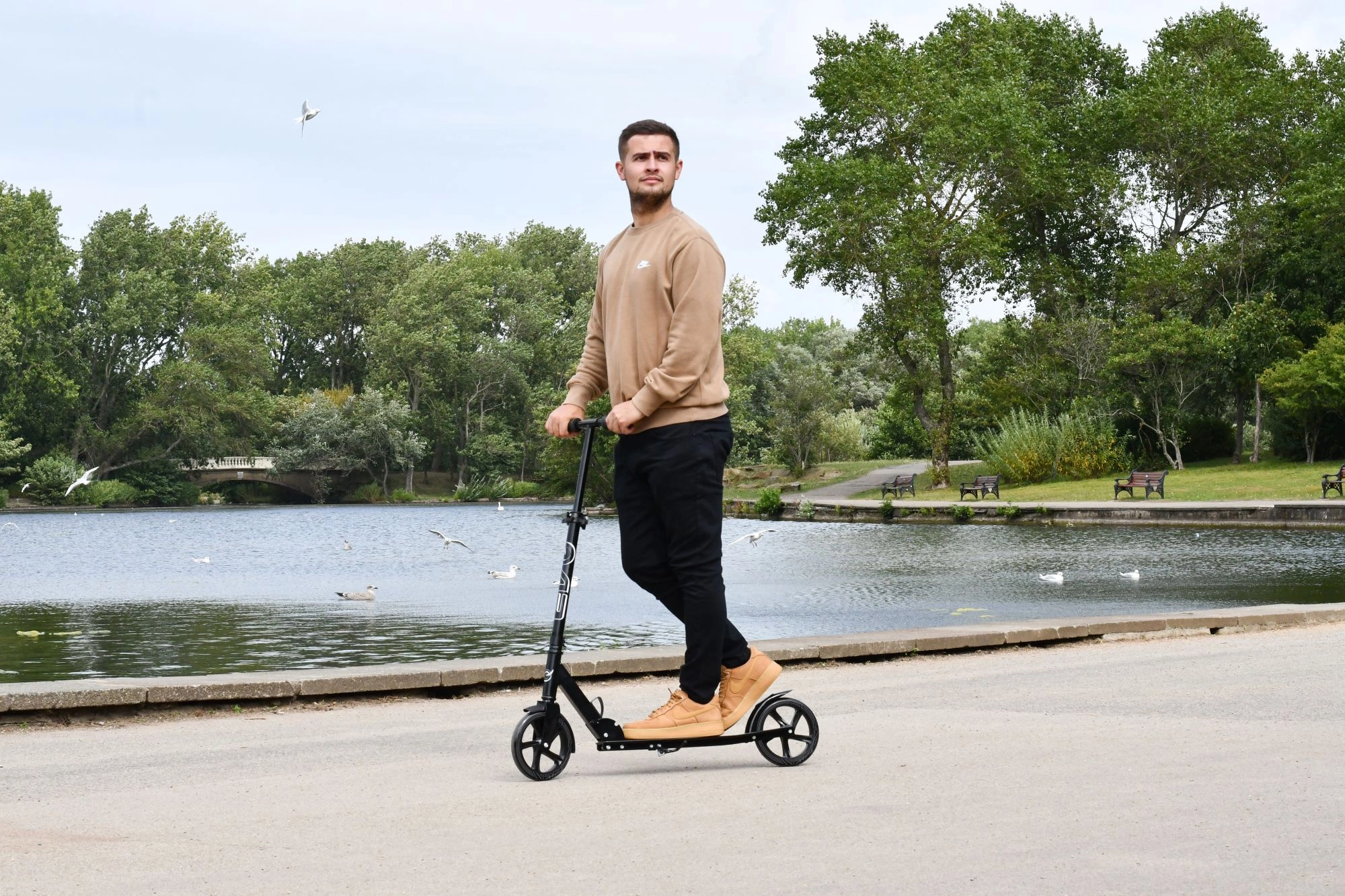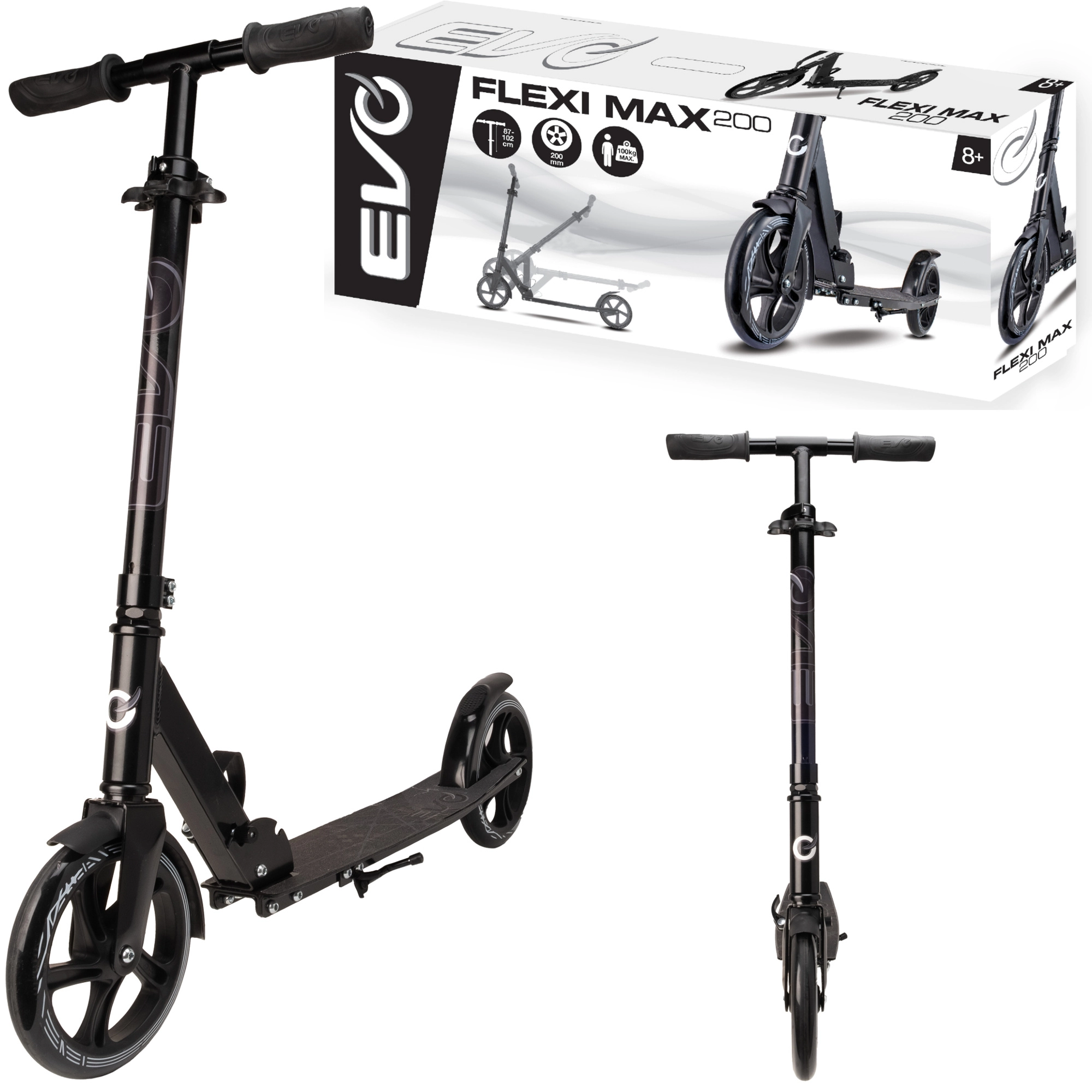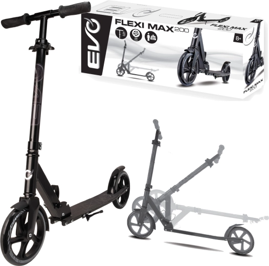 L’EVO Flexi Max 200 est une trottinette urbaine fiable, conçue pour les trajets quotidiens confortables comme pour les balades loisirs. Les grandes roues de 200 mm avec roulements ABEC-7 réduisent la résistance et offrent des démarrages plus rapides, tandis que les poignées en TPR garantissent une prise ferme sans glisser. La hauteur du guidon réglable (env. 87–102 cm) accompagne la croissance du rider et la béquille rabattable facilite le stationnement.