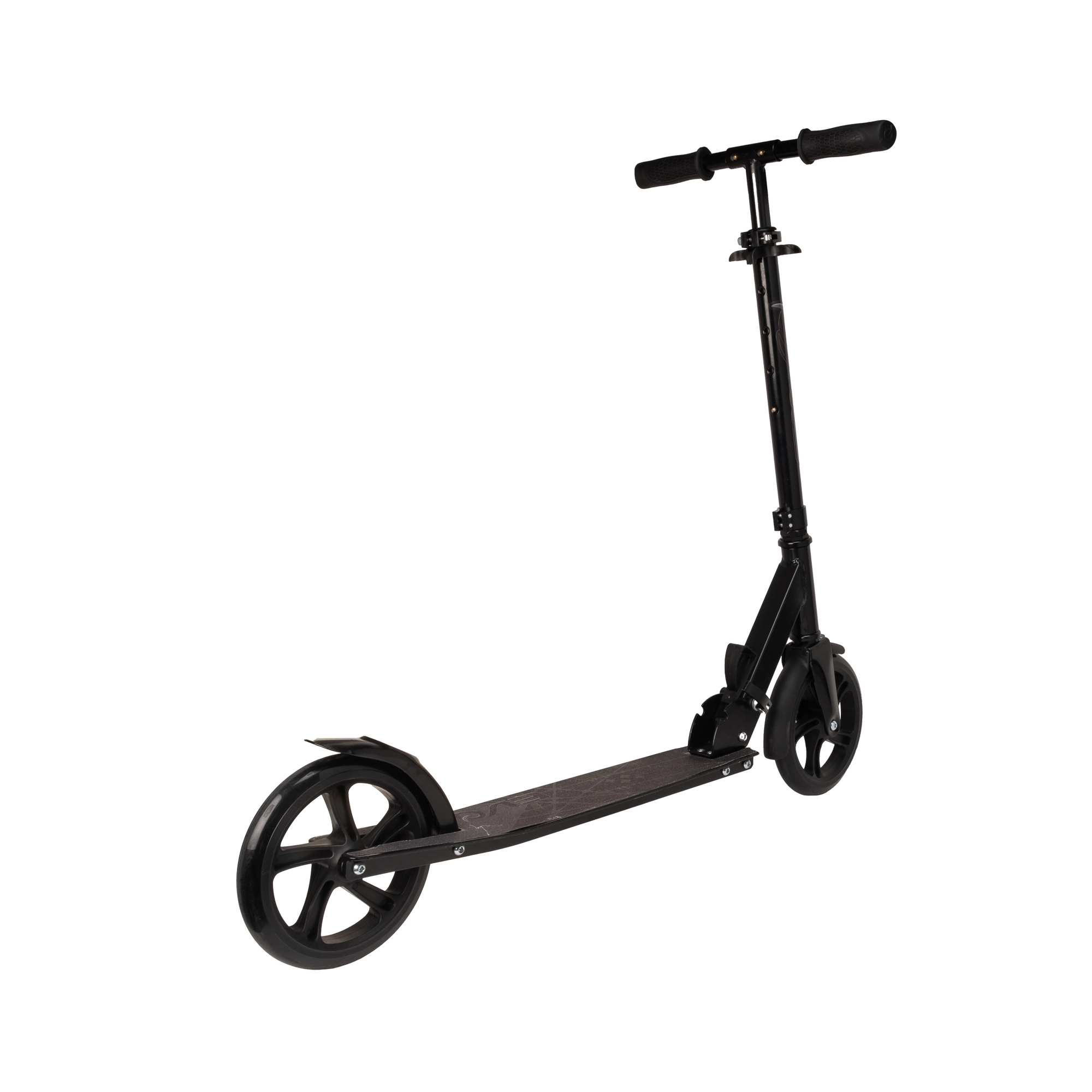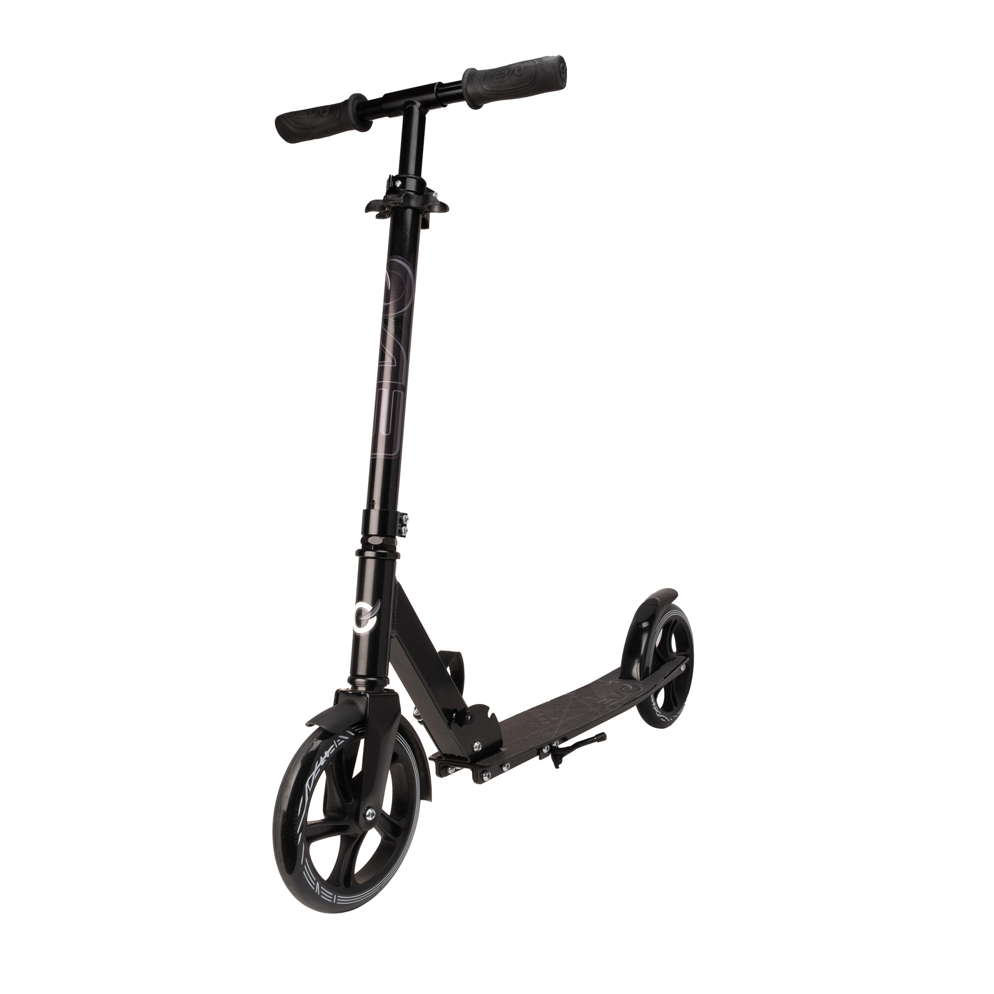 Le cadre robuste en noir intemporel est complété par un garde-boue arrière faisant également office de frein à pied pour s’arrêter vite et en toute sécurité. Grâce à la structure pliable et à la sangle d’épaule, le transport et le rangement sont ultra pratiques – à la maison, à l’école ou en déplacement.
