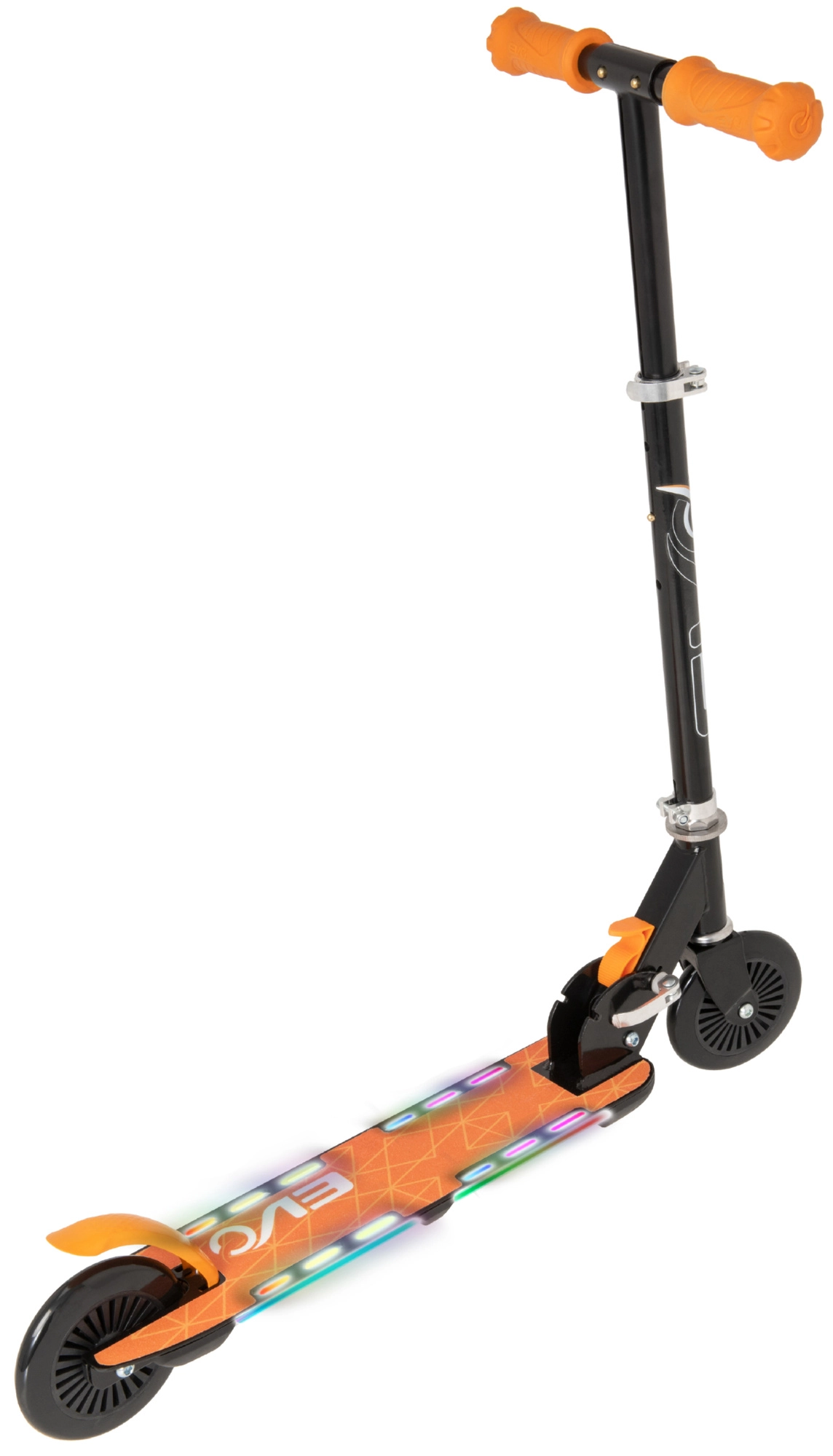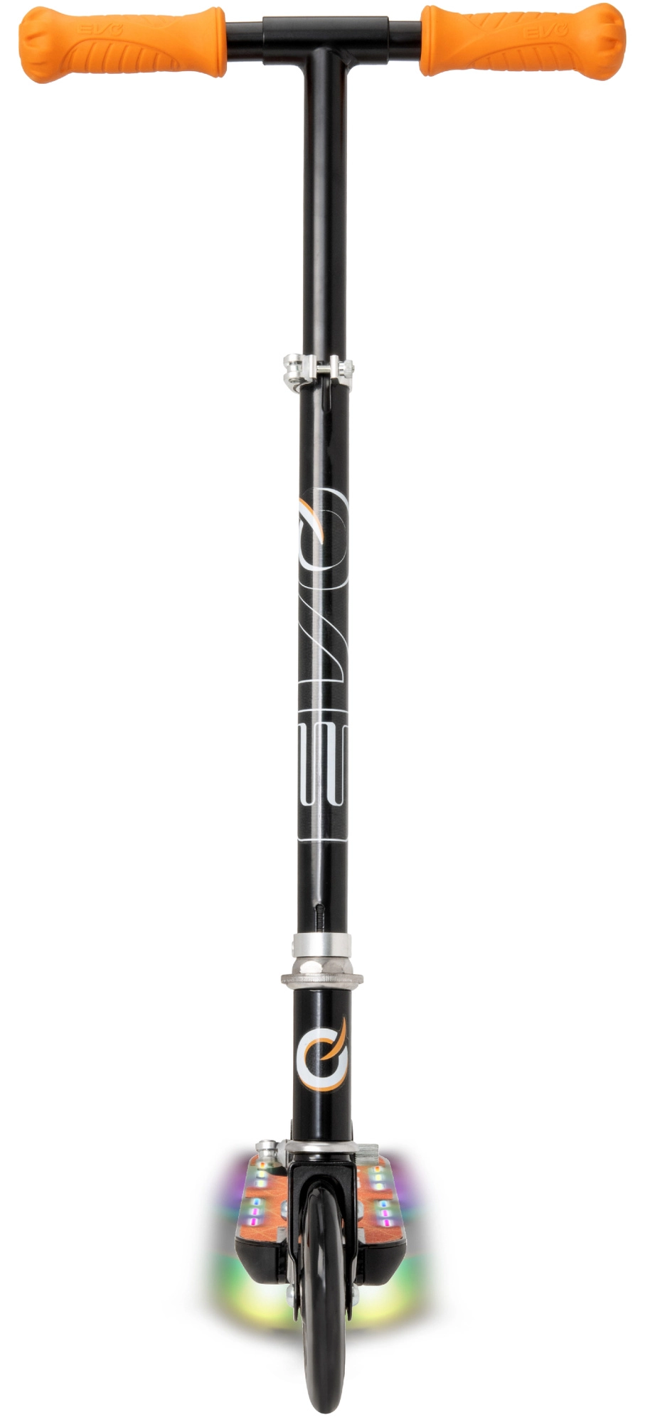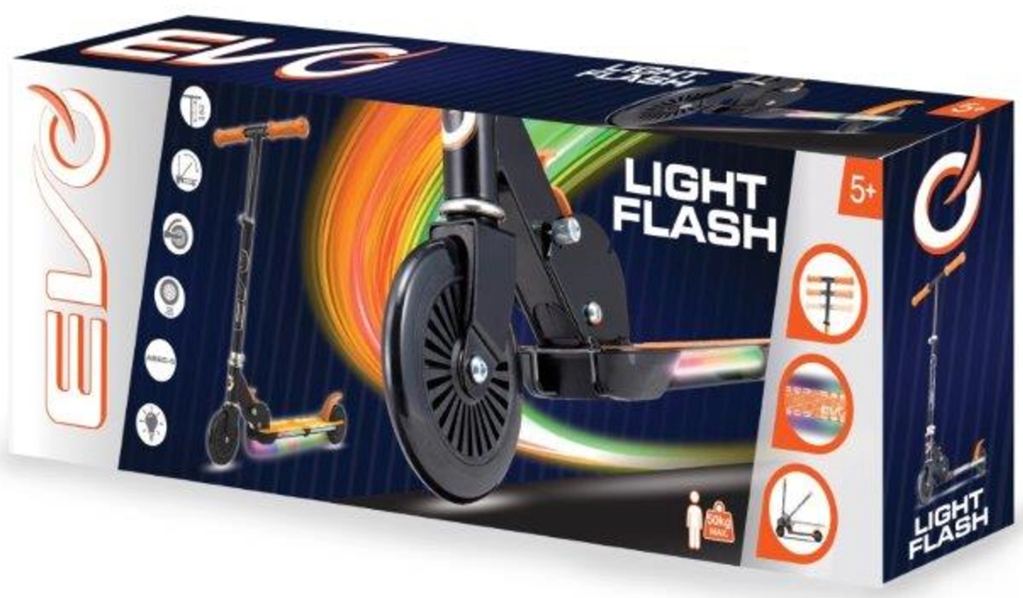La trottinette EVO Light Flash est un excellent choix pour les jeunes riders en quête de style, de sécurité et d’amusement. Le plateau à éclairage LED coloré améliore la visibilité et ajoute un effet attractif, tandis que la structure pliante légère facilite le rangement et le transport. La hauteur du guidon réglable (env. 72–82 cm) assure une ergonomie idéale pour différentes tailles d’enfants.