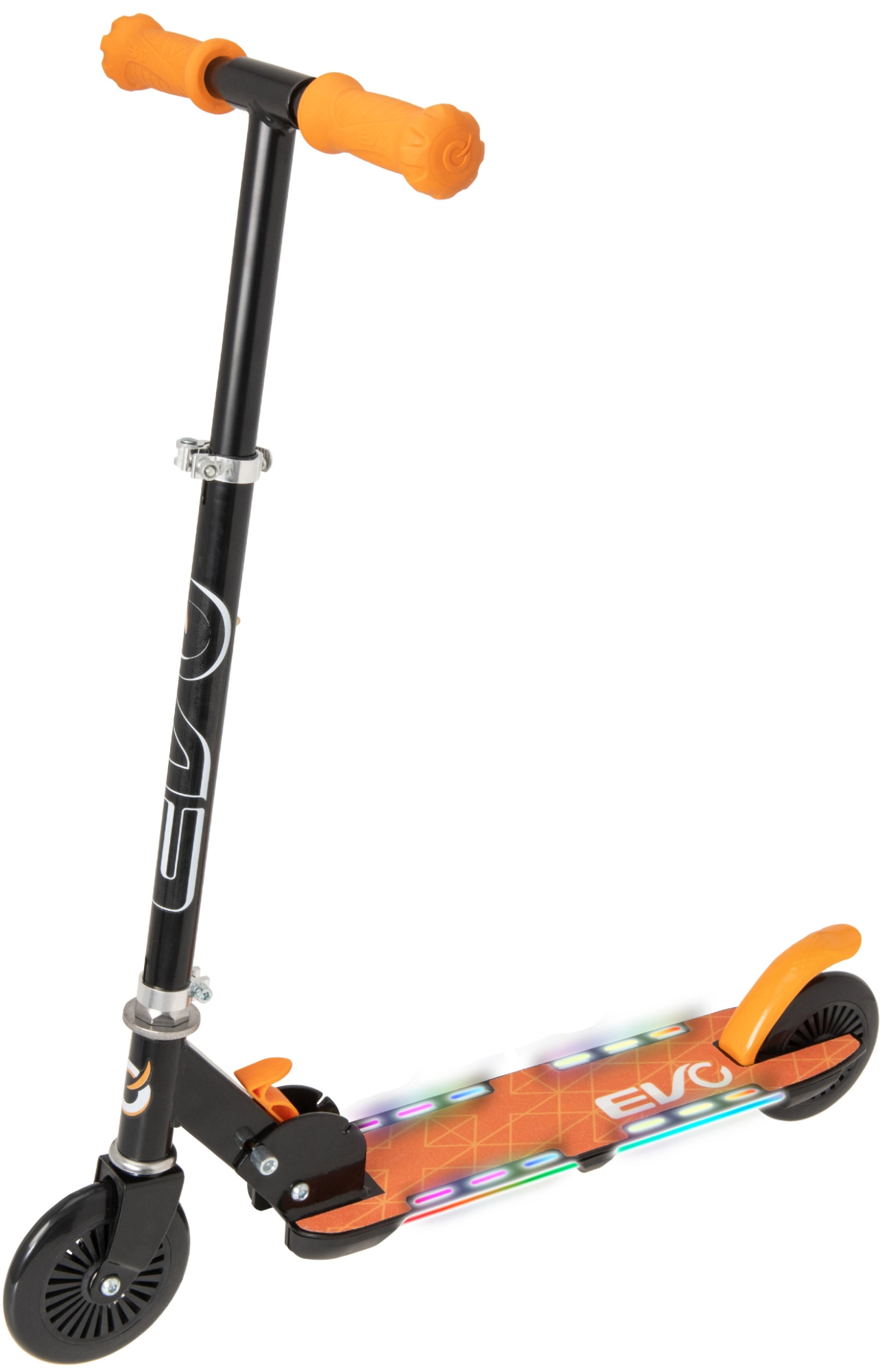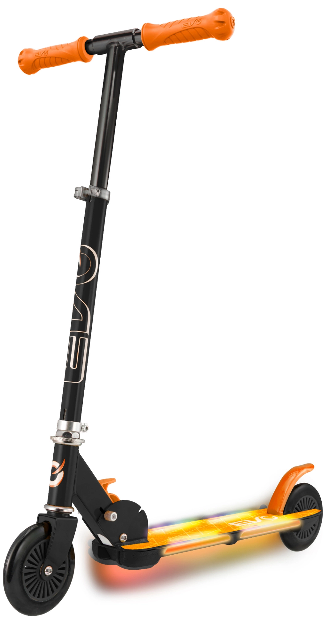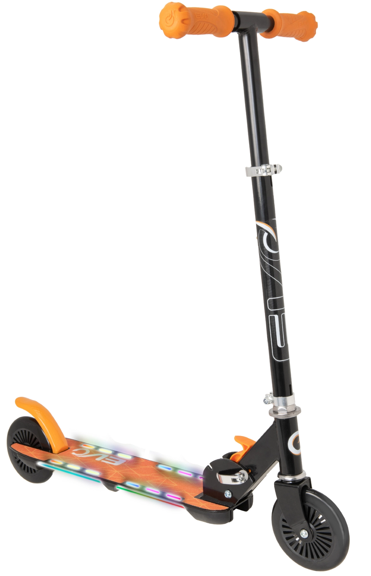 La trottinette EVO Light Flash est un excellent choix pour les jeunes riders en quête de style, de sécurité et d’amusement. Le plateau à éclairage LED coloré améliore la visibilité et ajoute un effet attractif, tandis que la structure pliante légère facilite le rangement et le transport. La hauteur du guidon réglable (env. 72–82 cm) assure une ergonomie idéale pour différentes tailles d’enfants.