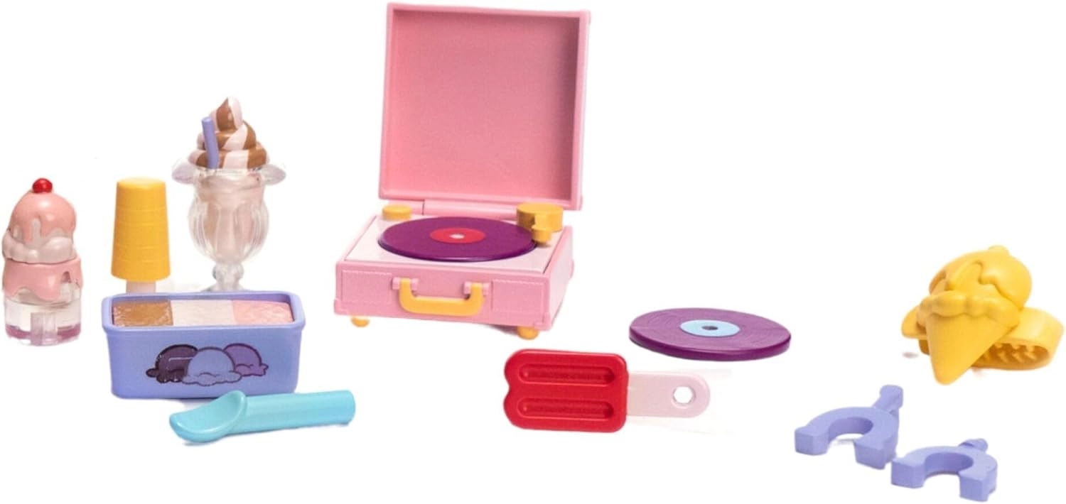 Le « tourne-disque » jouet, les petites « disques » et les accessoires de glace ajoutent une ambiance et des détails que les enfants adorent.