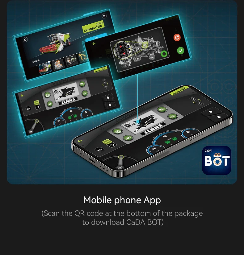 Ce grand set technique CaDA reproduit les détails ingénieux de la véritable moissonneuse CLAAS Dominator 370 – de la barre de coupe rotative au tube d’éjection, jusqu’au châssis avec roues robustes. Grâce à la commande double, profitez du modèle avec la télécommande RC 2,4 GHz fournie ou via l’application Bluetooth avec une portée de plus de 25 m.