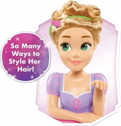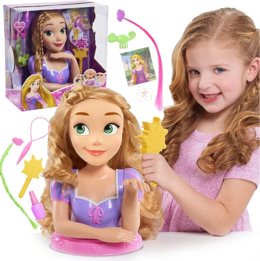 Cette luxueuse tête de stylisme Raiponce offre aux enfants tout ce dont ils ont besoin pour créer des coiffures enchantées. Grâce aux longs cheveux blonds, on peut facilement coiffer, onduler, tresser et combiner différentes décorations. Le socle stable maintient la tête fermement sur la table afin que les enfants puissent se concentrer sur le jeu créatif.