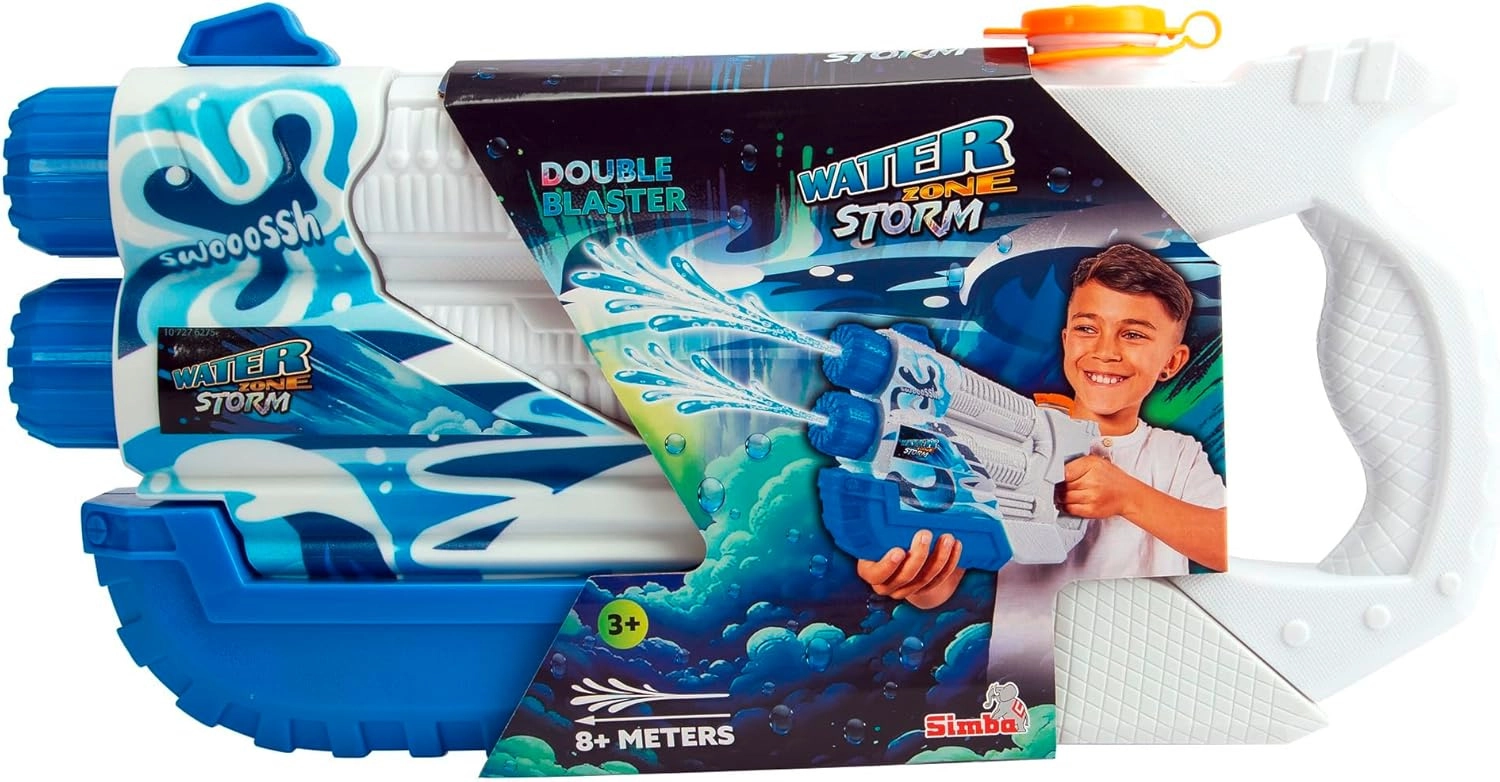 Le pistolet à eau SIMBA Waterzone Storm Double Blaster apporte un divertissement en plein air dynamique pour petits et grands. Grâce à la buse double (Double Jet), vous projetez deux puissants jets d’eau simultanément, ce qui améliore la précision et l’efficacité de chaque tir. Sa conception robuste en plastique et sa prise en main confortable facilitent l’utilisation même pour les enfants.