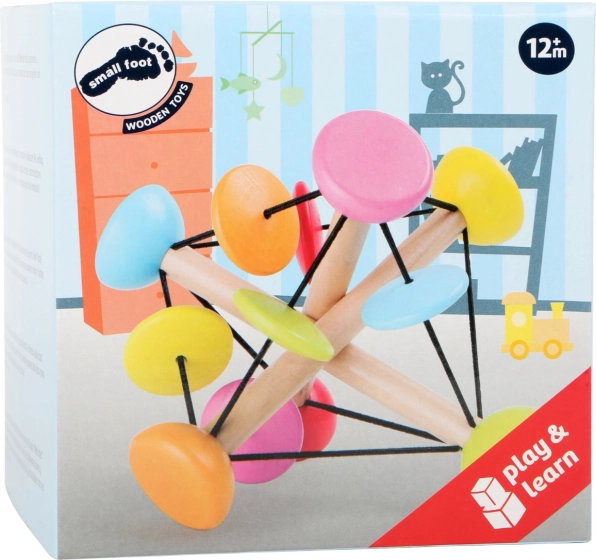 Ce jouet moteur astucieux de small foot est conçu pour les petites mains des enfants. Trois tiges en bois reliées par des élastiques souples créent une structure stable mais malléable que les enfants peuvent modeler librement. Les perles colorées émettent un agréable cliquetis lorsqu’on les déplace et les fait tourner, favorisant ainsi le développement sensoriel et la concentration.