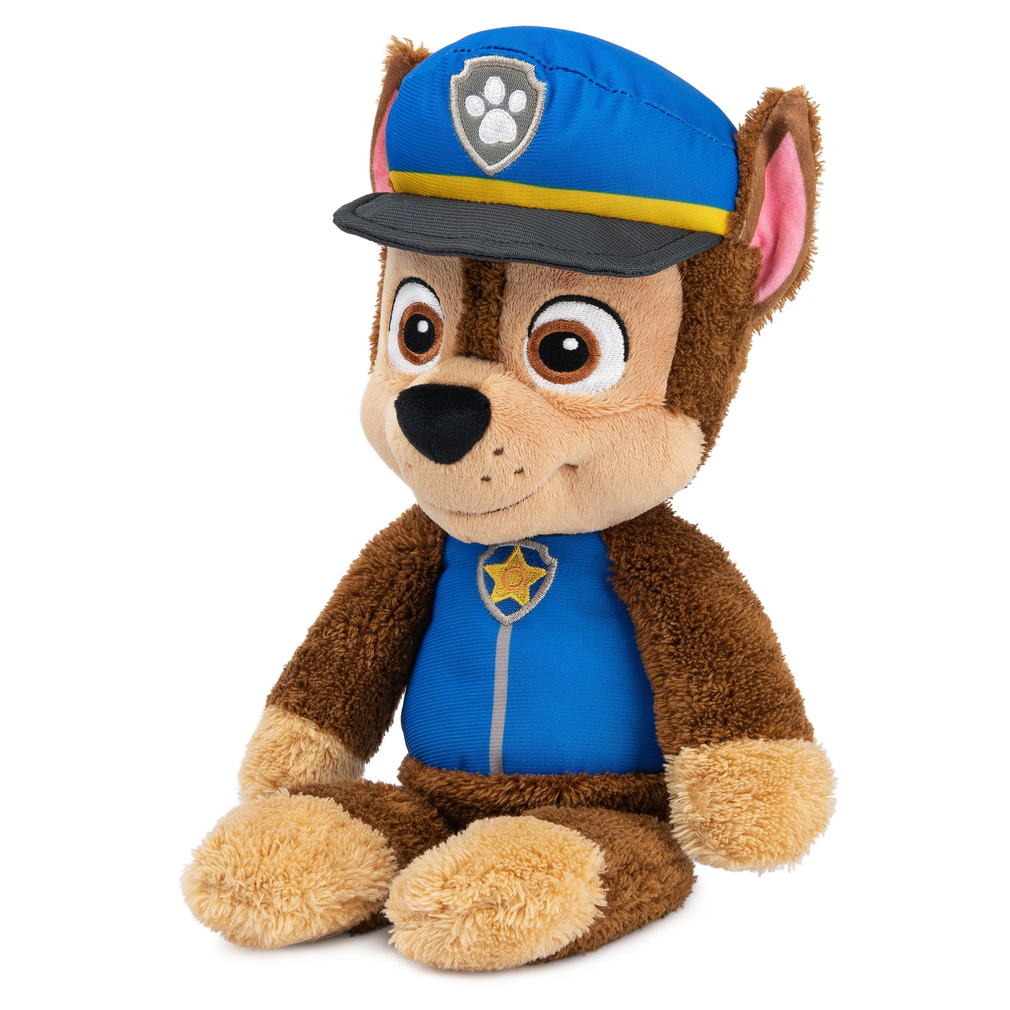 Adorable chien en peluche Chase de PAW PATROL par la marque GUND, une peluche douce, sûre et moelleuse d’environ 30 cm de haut. En uniforme de police bleu avec écusson brodé, elle ravira les petits fans de la série et stimulera l’imagination, les câlins et le jeu de rôles à la maison comme en voyage.