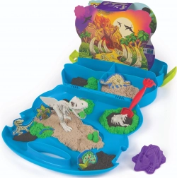Sable cinétique, squelette de T‑Rex, moules et outils, figurines et décors en carton, bac portable