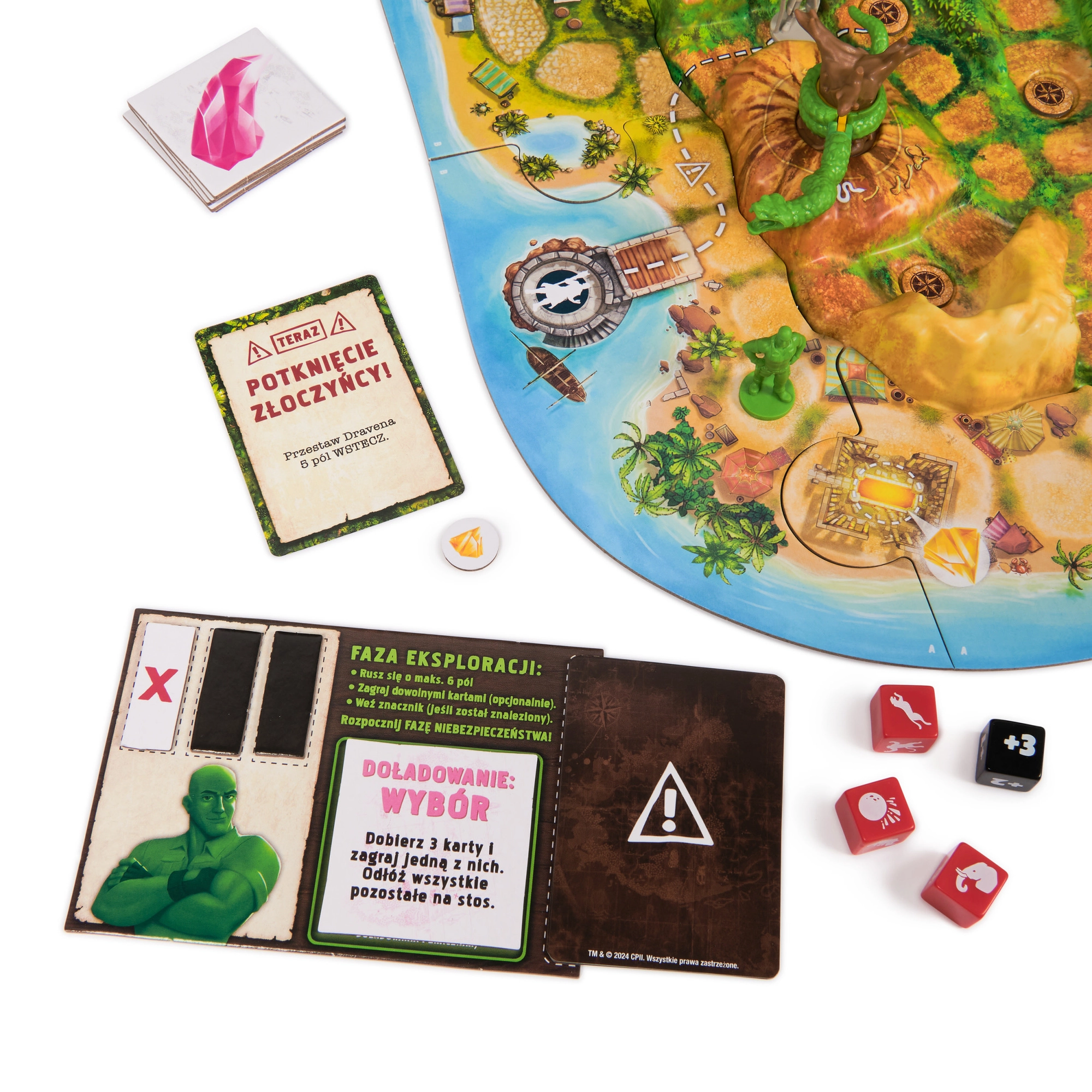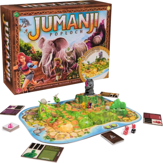 Partez dans l’univers de JUMANJI avec un jeu coopératif palpitant pour 2 à 4 joueurs. Collaborez, surmontez les obstacles de la jungle et collectez 5 cristaux magiques avant que le méchant n’atteigne la Montagne du Rhinocéros. Un plateau 3D interactif avec relief, figurines et éléments d’action garantit une expérience familiale rapide d’environ 30 minutes.