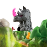 L’élément central du plateau est l’imposante Montagne du Rhinocéros en 3D avec sa corne de cristal. Le relief, les ponts et les chemins créent une aventure immersive et un déroulement de jeu clair.