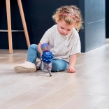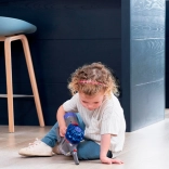 Le réservoir transparent à poussière se vide aisément et les billes colorées à l’intérieur simulent le flux des saletés (non amovibles). L’aspirateur est léger, agréable à tenir et, grâce à sa hauteur de 68 cm, facile à manœuvrer. Un excellent choix pour développer l’autonomie et la motricité par le jeu.