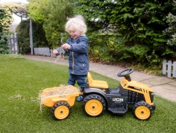 Le tracteur électrique à chevaucher avec remorque de la marque EVO apporte aux enfants beaucoup d’action au jardin comme à la maison. Grâce à une conduite facile et à une vitesse maximale réduite, la balade est à la fois sûre et amusante. Le style réaliste JCB et les couleurs vives encouragent le jeu actif, développent l’équilibre et la coordination et renforcent les muscles des jambes.