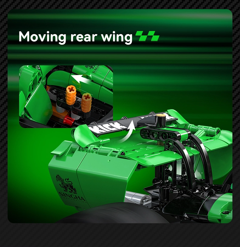 Ce kit ravira les passionnés de technique comme les collectionneurs. La monoplace F1, finement réalisée, restitue fidèlement les formes aérodynamiques, le système Halo, le cockpit détaillé et les marquages distinctifs des pneus Pirelli – le tout grâce à l’impression directe et durable des pièces sans recourir à des autocollants. Une construction robuste et des étapes de montage bien pensées garantissent une expérience de construction immersive.
