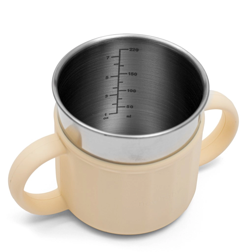 Découvrez la tasse 2-en-1 NEW BABY, à la fois stylée et fonctionnelle, qui évolue avec votre enfant. La combinaison de 50 % de silicone souple et 50 % d’acier inoxydable assure durabilité, hygiène et facilité de nettoyage. Grâce aux deux poignées latérales, la tasse tient parfaitement même pour les plus petits, et son design discret beige s’intègre dans tous les intérieurs.