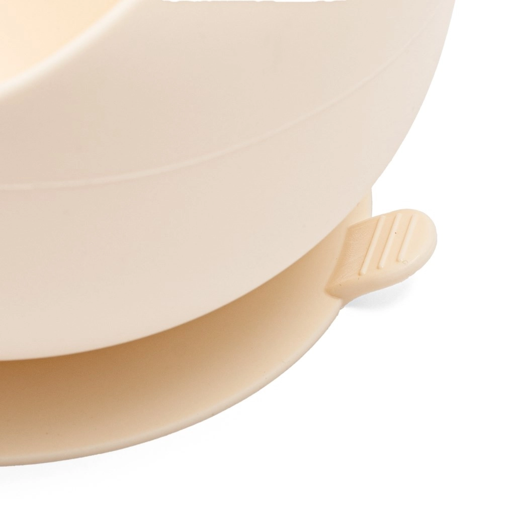 Bol pour enfants en silicone avec ventouse NEW BABY, coloris beige, qui facilite les premières tétées comme les repas en autonomie. Grâce à sa ventouse puissante, il adhère fermement à la table, est fabriqué en silicone alimentaire sans BPA et se nettoie facilement. Compatible micro-ondes, congélateur et lave-vaisselle. Ventouse stable, silicone sûr sans BPA, forme ergonomique et design moderne pour des repas confortables et propres.