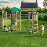 Le panneau avec cuisine et évier invite au jeu imaginatif, et des accessoires comme le gouvernail, le télescope, la cloche et le téléphone alimentent des histoires de « station spatiale ». La structure stable en bois de qualité est résistante aux intempéries et convient à jusqu’à 15 enfants simultanément, pour que personne ne s’ennuie.