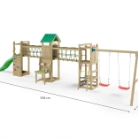 La vaste aire de jeu en bois Fungoo Space Longer transforme votre jardin en un espace sûr et créatif, plein de mouvement. Elle offre un long toboggan de 220 cm, un mur d’escalade avec corde, des balançoires, un pont de corde et un module de cuisine pour les jeux de rôle. La structure imprégnée sous pression, résistante, est prête pour un usage quotidien, et les détails bien pensés stimulent la motricité, l’équilibre et l’imagination des enfants.