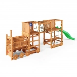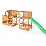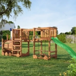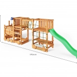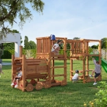 Un équipement bien pensé améliore l’agilité, l’équilibre et la coordination. Le pont de corde et le filet d’escalade développent la motricité, le toboggan de 2,2 m apporte des sensations rapides, et les poignées et ancres au sol assurent la sécurité d’utilisation. L’aire convient aux jardins privés pour les enfants dès 3 ans et jusqu’à 50 kg par utilisateur.