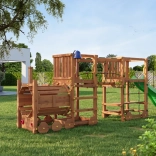 L’aire de jeux FUNGOO Loco Express associe une structure en bois sûre à un thème ferroviaire captivant qui stimule l’imagination. Les enfants peuvent grimper, glisser, traverser le tunnel de la locomotive et se reposer à la table de pique-nique sous la plate-forme. Grâce au bois de qualité avec imprégnation, l’ensemble est stable, durable et idéal pour jouer toute la journée en plein air.