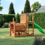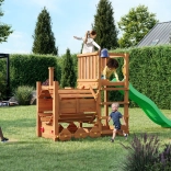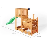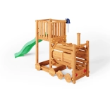 L’aire de jeux FUNGOO Loco est conçue comme une locomotive avec tunnel, invitant aux jeux de rampement, de cache-cache et au jeu de rôle de conducteur. Le long toboggan ondulé de 2,2 m assure de nombreuses descentes amusantes, tandis que la clochette stimule l’imagination et le jeu interactif des enfants. La structure en bois de qualité, imprégné résiste aux intempéries et est solidement ancrée au sol.