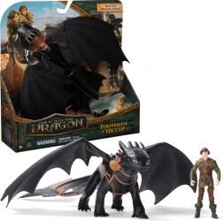Toothless finement détaillé avec texture d’écailles, selle et figurine de Harold pour une chevauchée réaliste et des scènes de film.