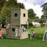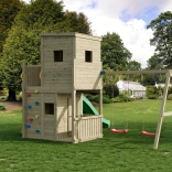 Les prises d’escalade colorées développent la force et la coordination, deux balançoires réglables sur cordes solides permettent un amusement en solo ou à deux.