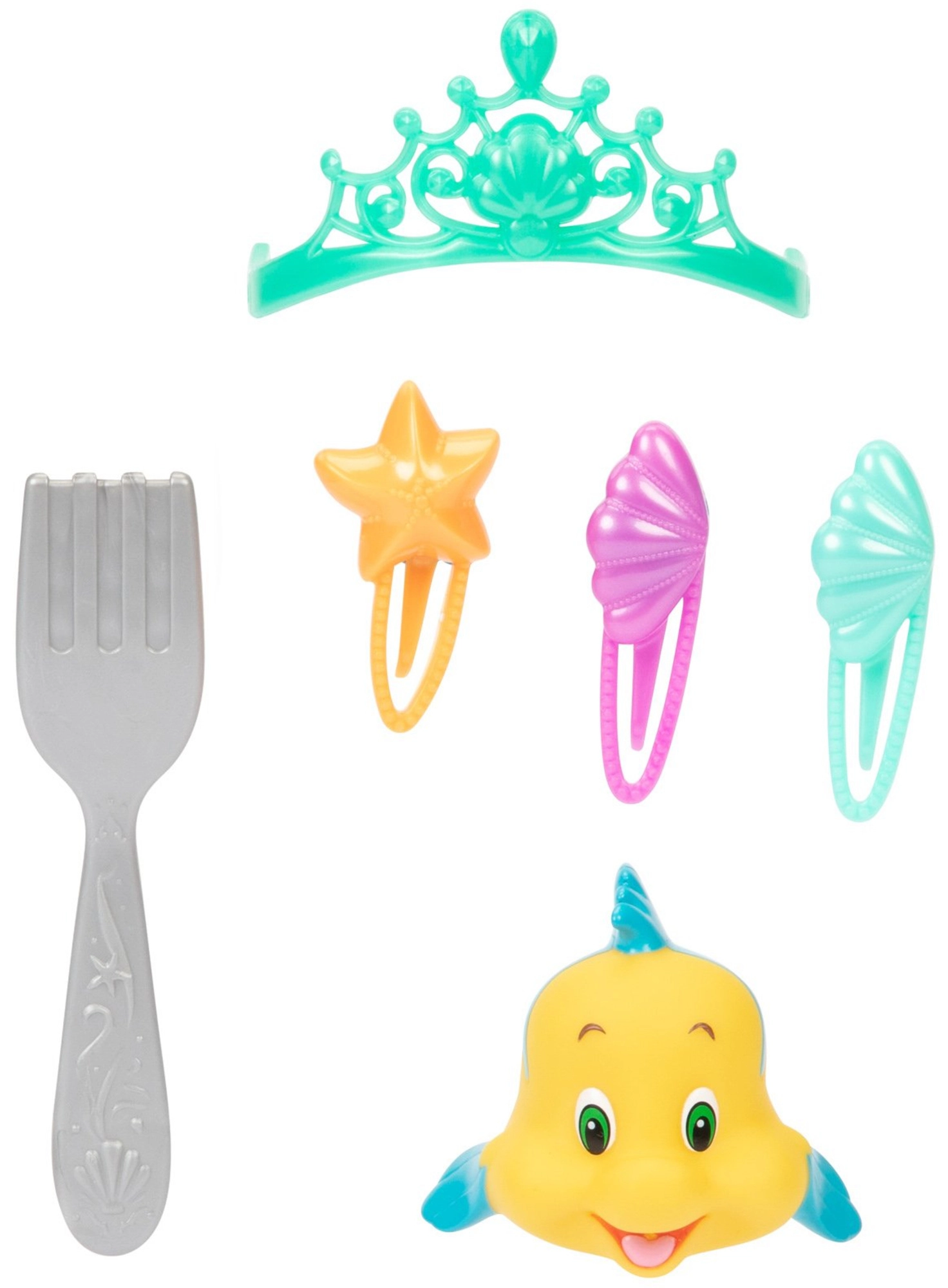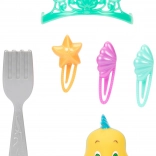 Inclus : Polochon, pour rejouer les scènes préférées ou inventer de nouvelles histoires. Un riche ensemble d’accessoires – tiare, 3 pinces et le peigne stylé « dinglehopper » – favorise la motricité fine et stimule l’imagination lors de la création de coiffures. Ariel a une queue de sirène scintillante et un haut coquillage avec élément décoratif.