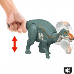 La figurine de Mattel représente fidèlement la Maiasaura avec une texture de peau réaliste, des couleurs marquées et une finition détaillée. Grâce aux articulations mobiles des pattes, du cou et de la queue, vous pouvez facilement créer des poses dynamiques, de la marche paisible à l’attaque. Le contrôle par la queue active un coup de mâchoires caractéristique et le rugissement, intensifiant les scènes de jeu réalistes.
