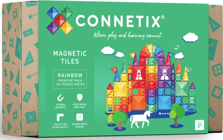 Découvrez des possibilités de création infinies avec le jeu de construction magnétique CONNETIX aux couleurs de l’arc-en-ciel. Ce set de 102 pièces doté de magnets en néodyme puissants favorise l’apprentissage STEM/STEAM, développe la visualisation spatiale, la motricité fine et la créativité. Les pièces transparentes et résistantes s’assemblent facilement et permettent de construire des structures stables, des châteaux et des ponts jusqu’aux fusées.