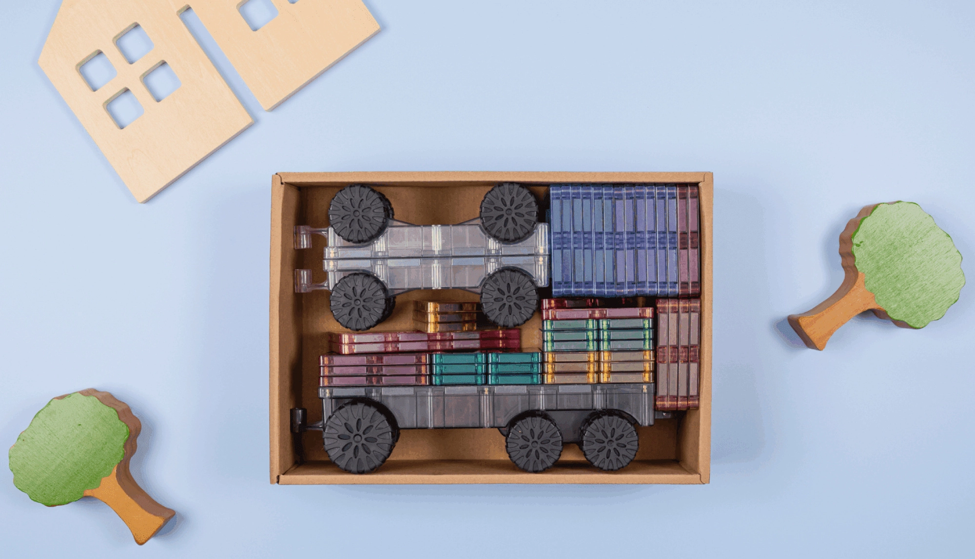 Le CONNETIX Pastel Transport Pack propose 50 pièces transparentes et résistantes avec de puissants aimants en néodyme et trois châssis à roues. Les enfants construisent facilement des voitures, des trains ou des machines futuristes, tout en se familiarisant naturellement avec la géométrie 2D/3D, la symétrie et les principes de physique (équilibre, stabilité, cause–effet). Les pièces s’assemblent fermement de tous les côtés et le « clic » lors de l’assemblage encourage de nouvelles expériences.