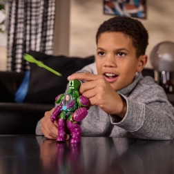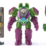 Exo‑armure vert‑violet avec détails mécaniques, armes et projectiles à lancer pour encore plus d’action et de fun.
