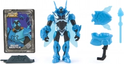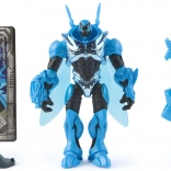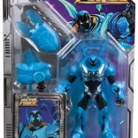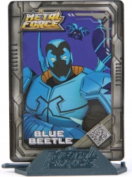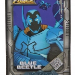 La boîte comprend des accessoires thématiques — boucliers, arme et ailes — qui enrichissent le jeu imaginatif. Sont également inclus une carte du personnage et un socle pour une présentation stylée. La figurine est produite sous licence officielle DC et restitue fidèlement l’apparence de BLUE BEETLE.