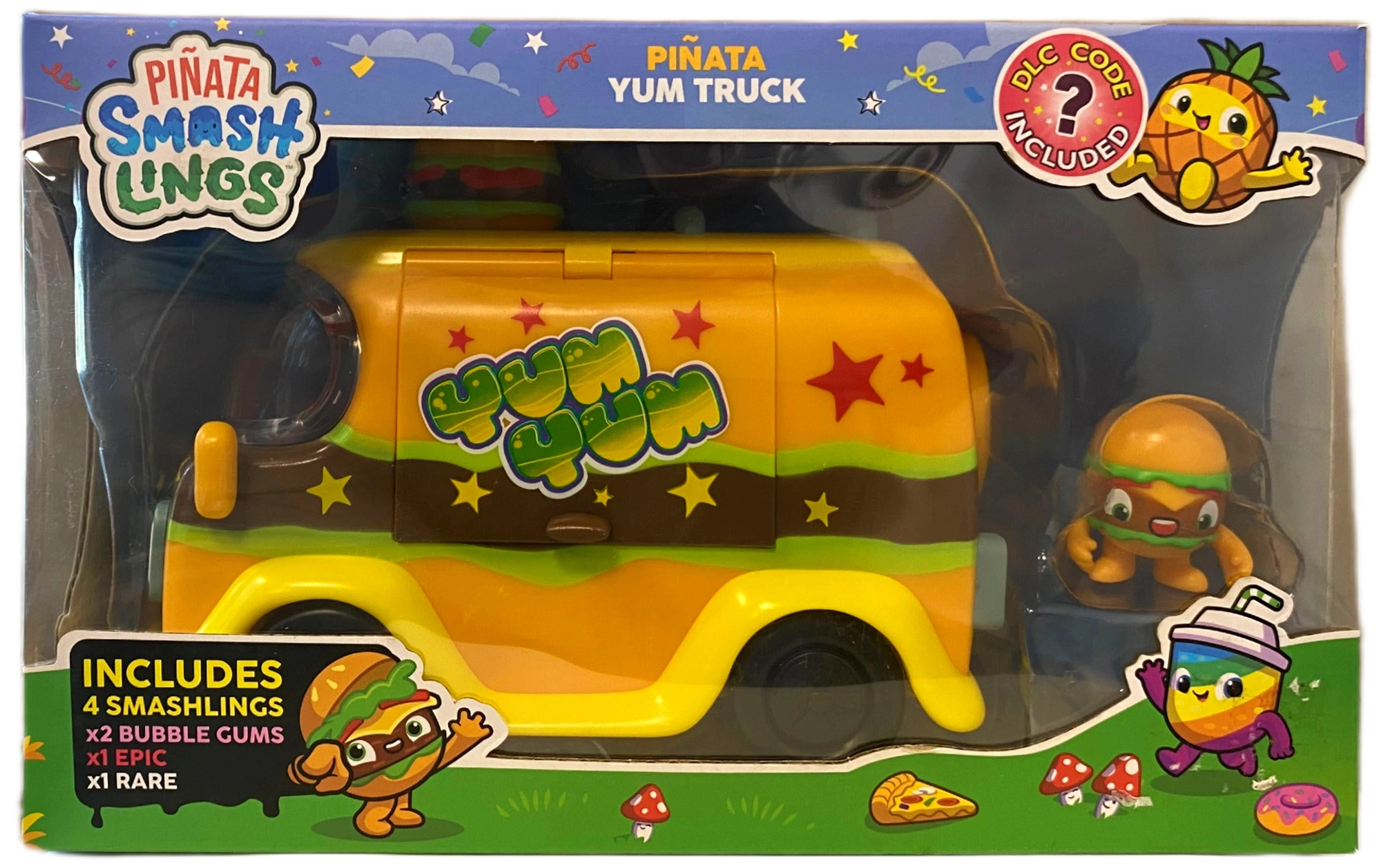 Découvrez un monde tropical de douceurs où, des pinatas arc-en-ciel, prennent vie d’adorables et énergiques créatures Smashlings. Ce set officiel Yum Truck Playset apporte un food truck stylé avec portes ouvrantes et intérieur prêt pour la fête, quatre figurines colorées (env. 3,5–4 cm) et trois accessoires “foodie” pour servir des gourmandises. Grâce au code DLC, débloquez en plus du contenu unique dans le jeu.