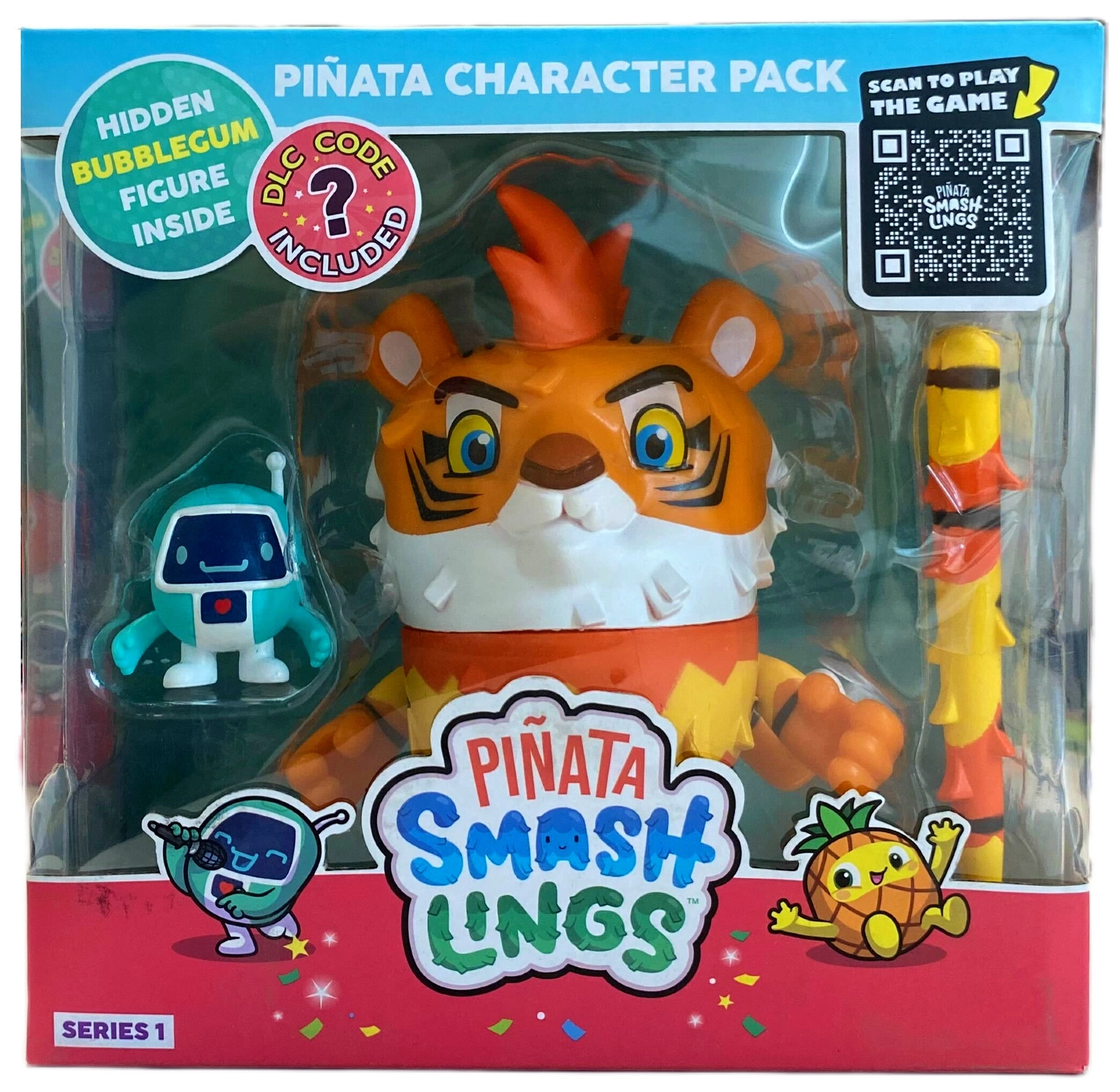 Explorez le Piñataverse tropical où des Smashlings pleins d’énergie naissent de piñatas hautes en couleur ! Le set avec la piñata tigre Mo comprend une grande figurine de piñata (env. 11,5–12 cm) avec une surprise à l’intérieur, 2 mini figurines et un accessoire stylé – un maillet inspiré du jeu. Grâce au code DLC, prolongez l’expérience avec des récompenses numériques.