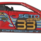 Carrosserie rouge, marquages de course et lignes dynamiques pour un look réaliste.