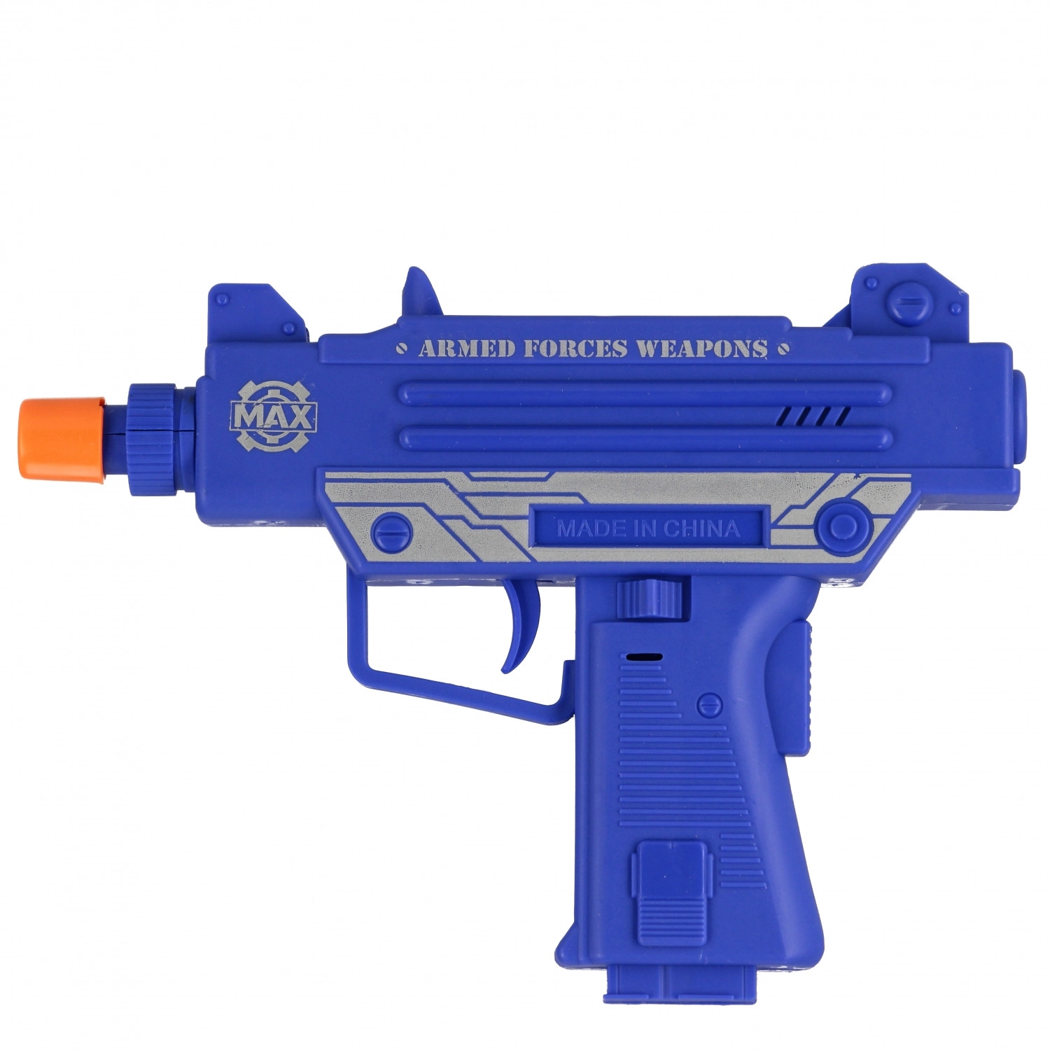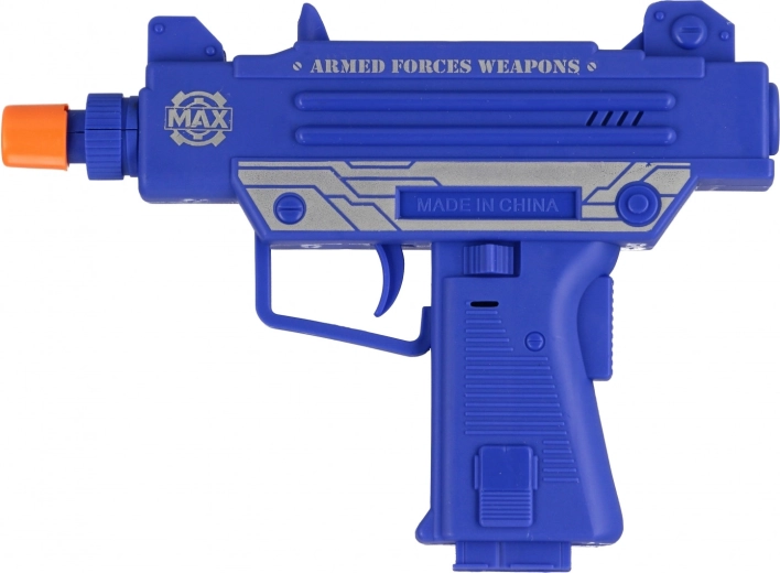 Cette arme en plastique avec un embout de sécurité orange et une poignée ergonomique est conçue pour une prise en main confortable et un jeu sécurisé pour les enfants.