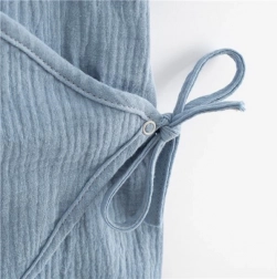 La mousseline est une matière hautement respirante et très légère, qui permet une libre circulation de l’air et aide à prévenir la surchauffe. Le tissu est également résistant, supporte les lavages répétés et devient avec le temps encore plus doux et agréable au toucher. La combinaison est en 100 % coton et répond aux normes strictes OEKO-TEX STANDARD 100 pour la sécurité de la peau des enfants.