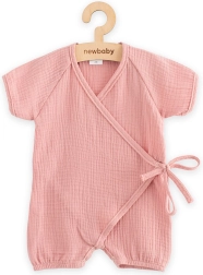 Cette élégante combinaison d’été en mousseline à manches courtes est idéale pour les journées chaudes. La fermeture portefeuille latérale avec liens et pression intérieure facilite l’enfilage, tandis que les pressions entre les jambes accélèrent le change. Les ourlets légèrement élastiqués au bas des jambes ne serrent pas et assurent un confort maximal pour le bébé.