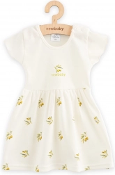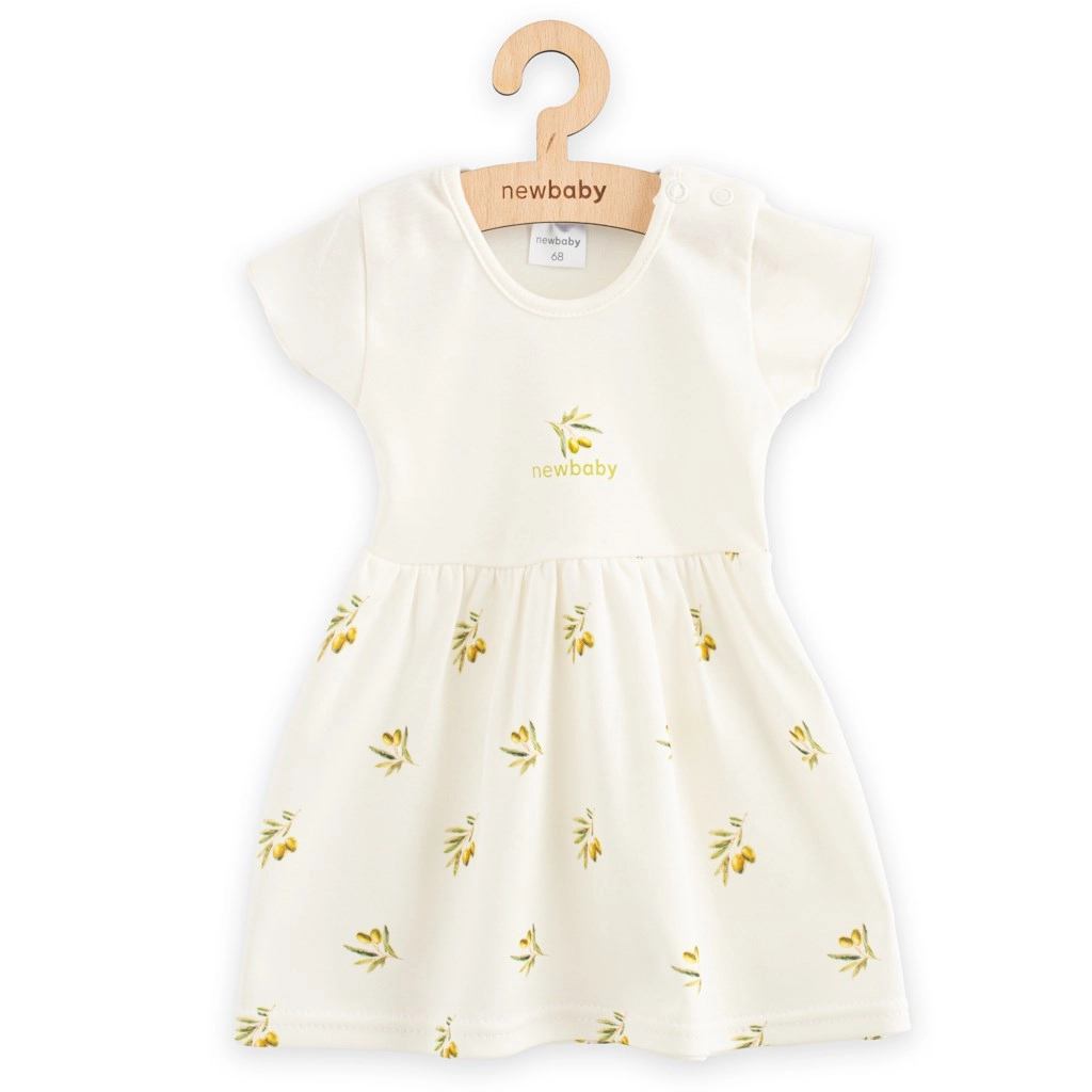 Adorable robe pour bébé New Baby avec imprimé olives, en 100 % coton biologique doux. Légère, respirante et agréable sur la peau, avec fermeture à pression pour un habillage facile. La certification OEKO-TEX STANDARD 100 garantit la sécurité pour la peau sensible des enfants.