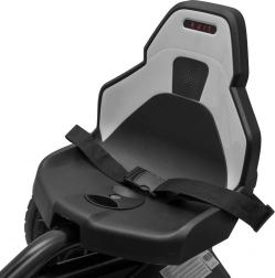 Le kart est conçu avec un accent sur la sécurité et le confort : la chaîne entièrement carénée protège les mains des enfants, le frein à main apporte de l’assurance lors du freinage et le siège réglable garantit une position correcte pendant la conduite. Les roues EVA silencieuses de 25 cm de diamètre amortissent les irrégularités et permettent un fonctionnement fluide sans bruit inutile.