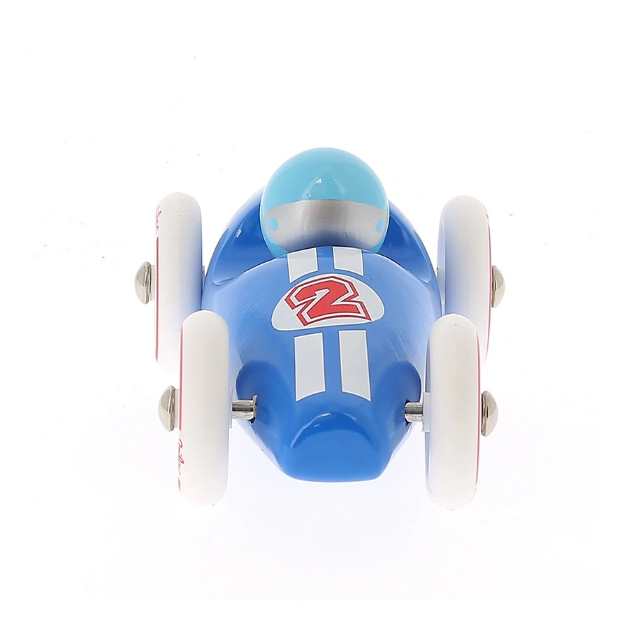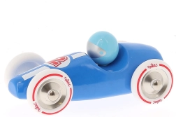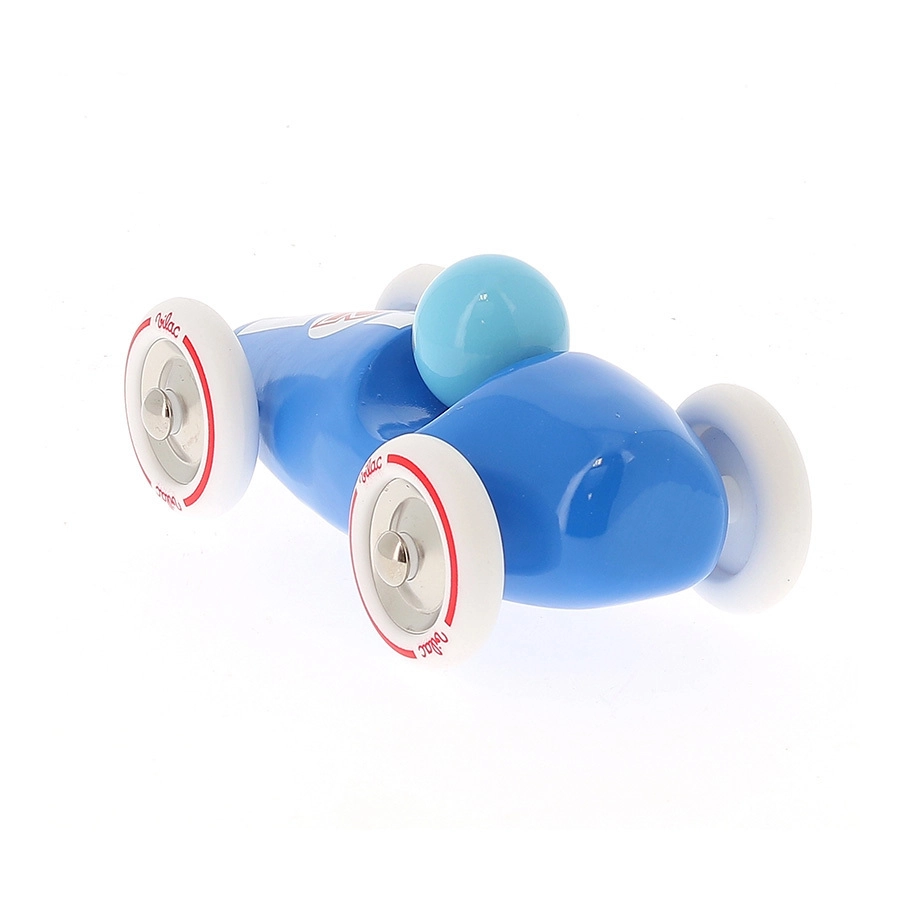 La voiture de course bleue Vilac se distingue par son design rétro épuré, sa finition précise et ses matériaux résistants. Le bois laqué est agréable au toucher et facile d’entretien, tandis que les éléments métalliques et les roues caoutchoutées garantissent une conduite fluide et silencieuse sur différentes surfaces. Jouer avec la voiture favorise la coordination œil-main, stimule l’imagination et la concentration.