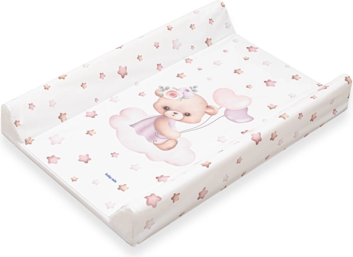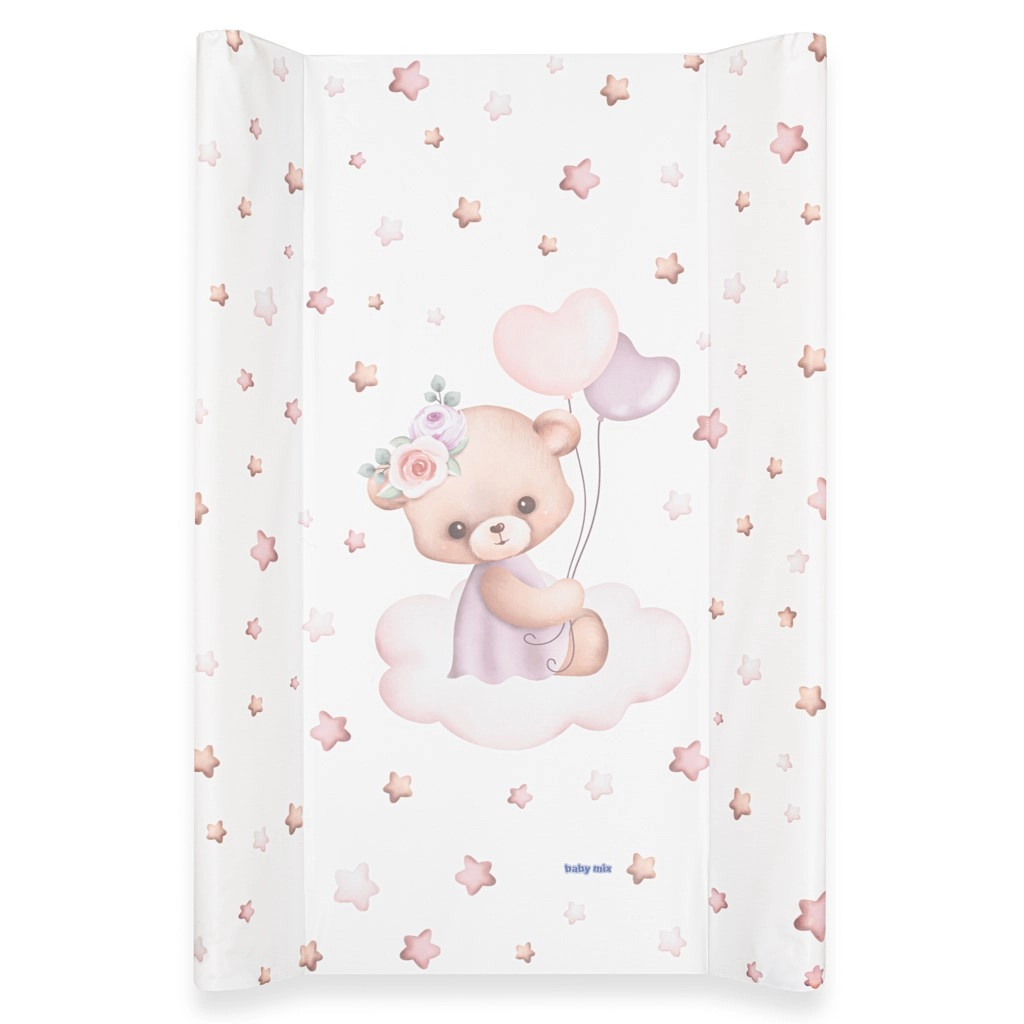 Le matelas à langer BABY MIX de couleur rose avec un adorable motif d’ourson est l’allié idéal pour les soins quotidiens de bébé. Il offre une surface confortable, des bords surélevés pour plus de sécurité et une surface facilement lavable sans substances nocives.